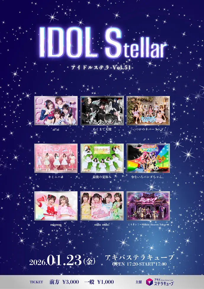 出演者 mignon / ai*ai / あくまで天使 / キミニハネ / 最後の夏休み / なないろパンダちゃん。 / NCHD-のちほど- / milu milu! / ミリオン!〜Million Heaven Tokyo〜 / 「いつかのネバーランド」