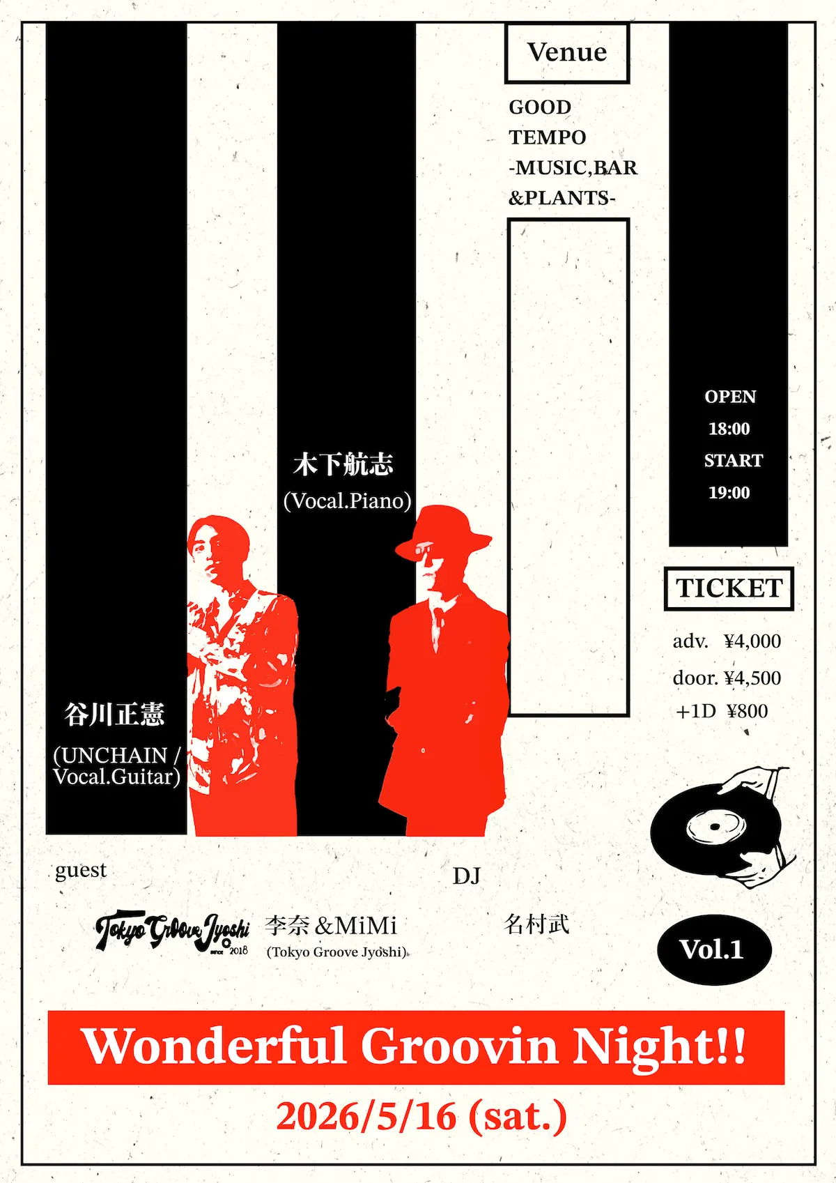 出演者 木下航志 / 谷川正憲(UNCHAIN) / 李奈(Tokyo Groove Jyoshi) / MiMi(Tokyo Groove Jyoshi) / 名村武