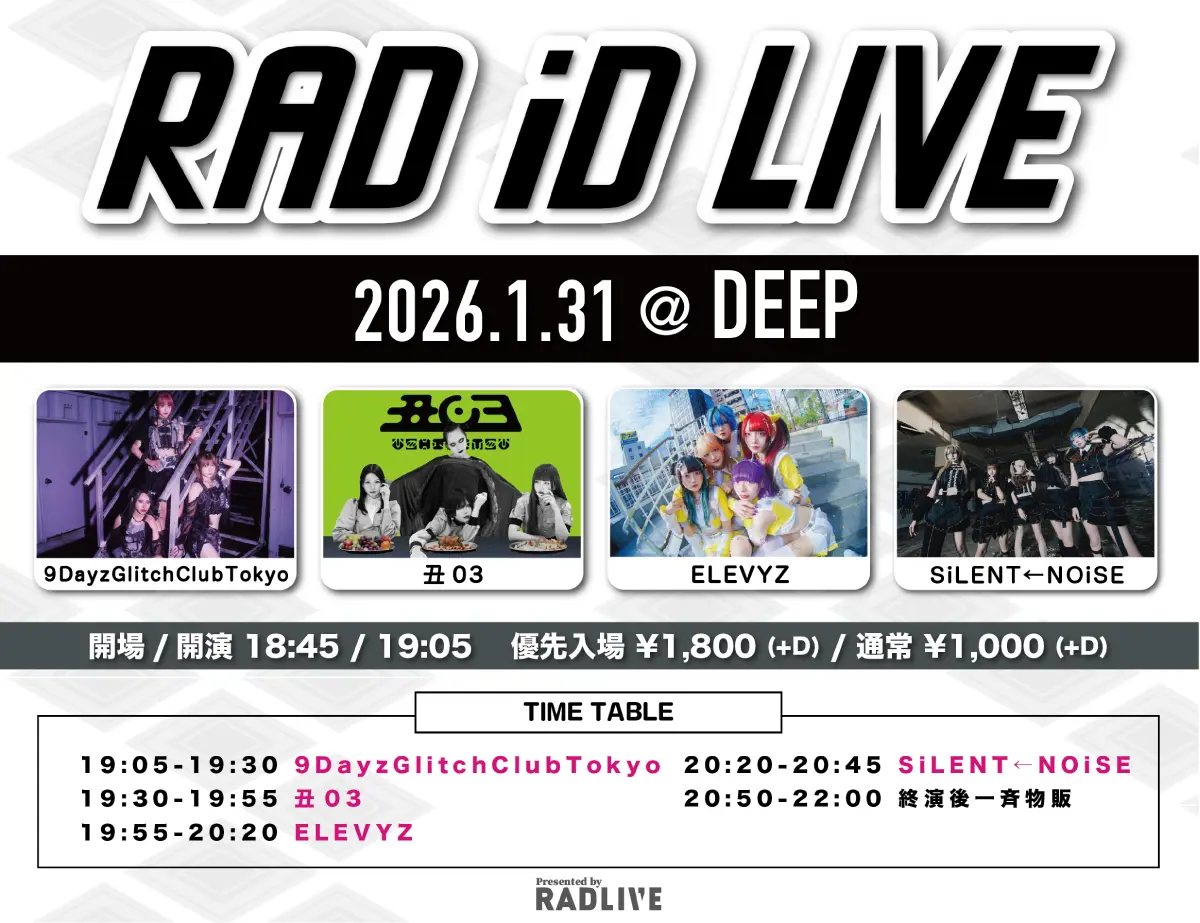 出演者 9DayzGlitchClub Tokyo / 丑03 / ELEVYZ / SiLENT←NOiSE
