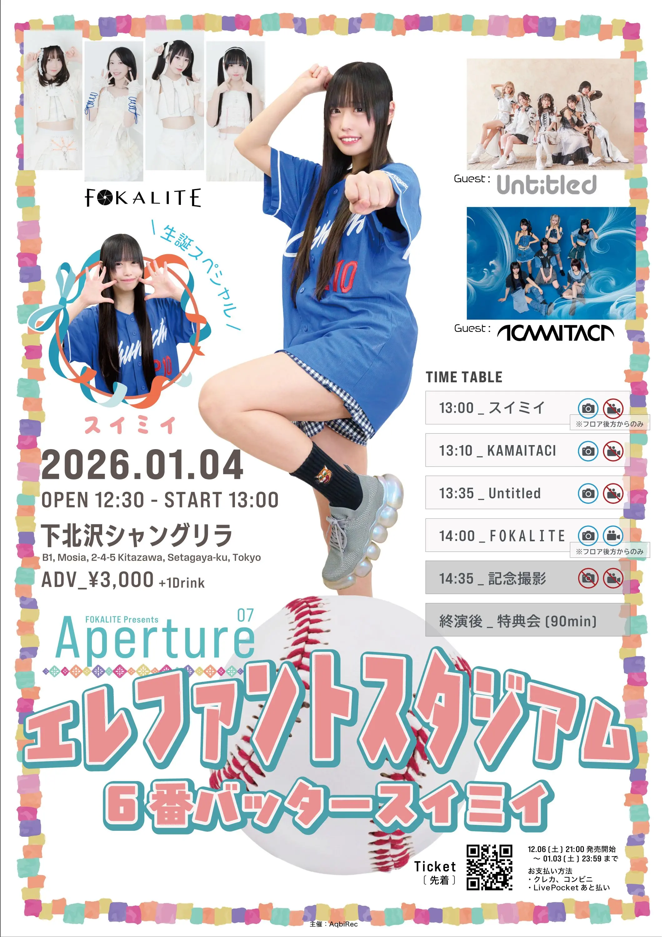 出演者 FOKALITE / スイミイ / Untitled / KAMAITACI