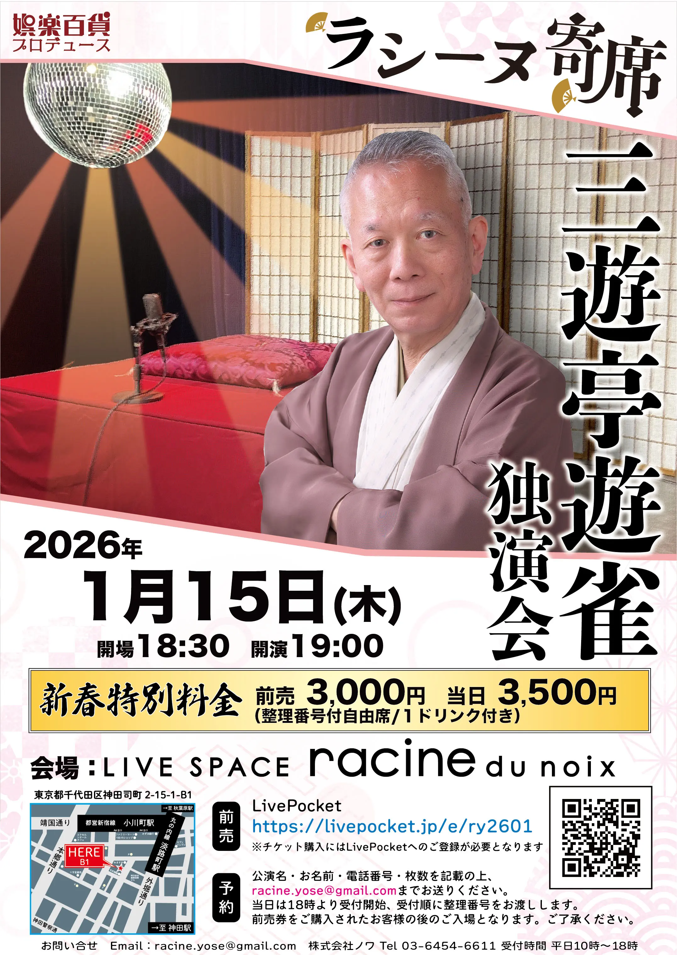 《娯楽百貨プロデュース》ラシーヌ寄席-三遊亭遊雀 独演会