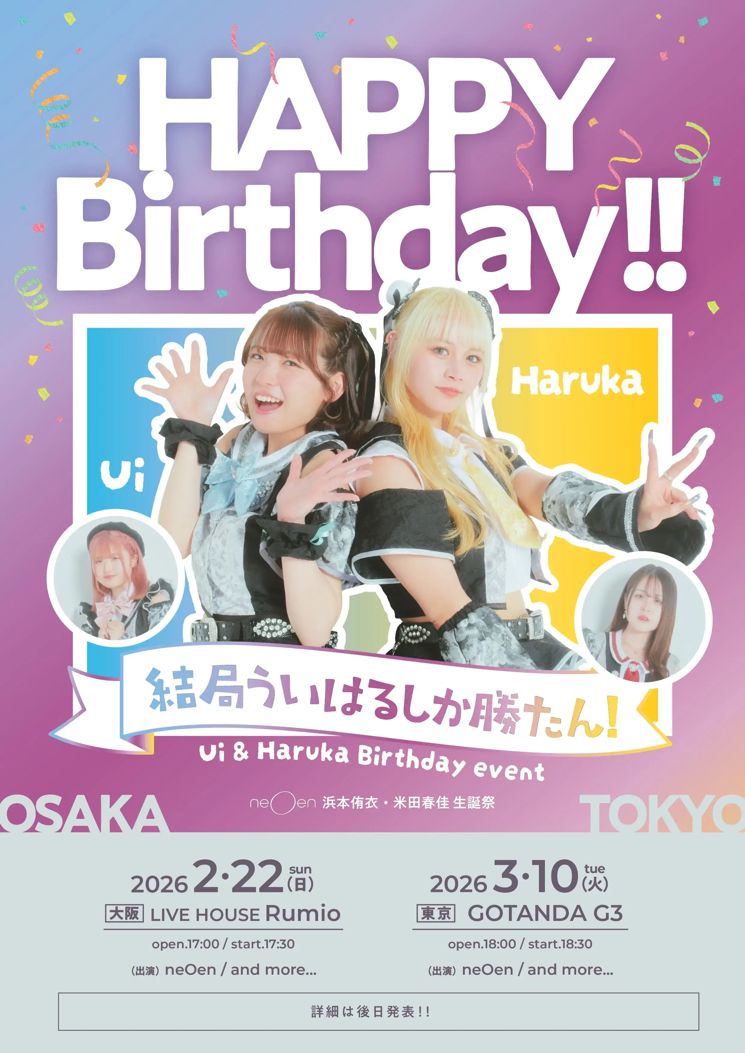 neOen 米田春佳・浜本侑衣 生誕祭『結局ういはるしか勝たん!』 〜 東京編 〜