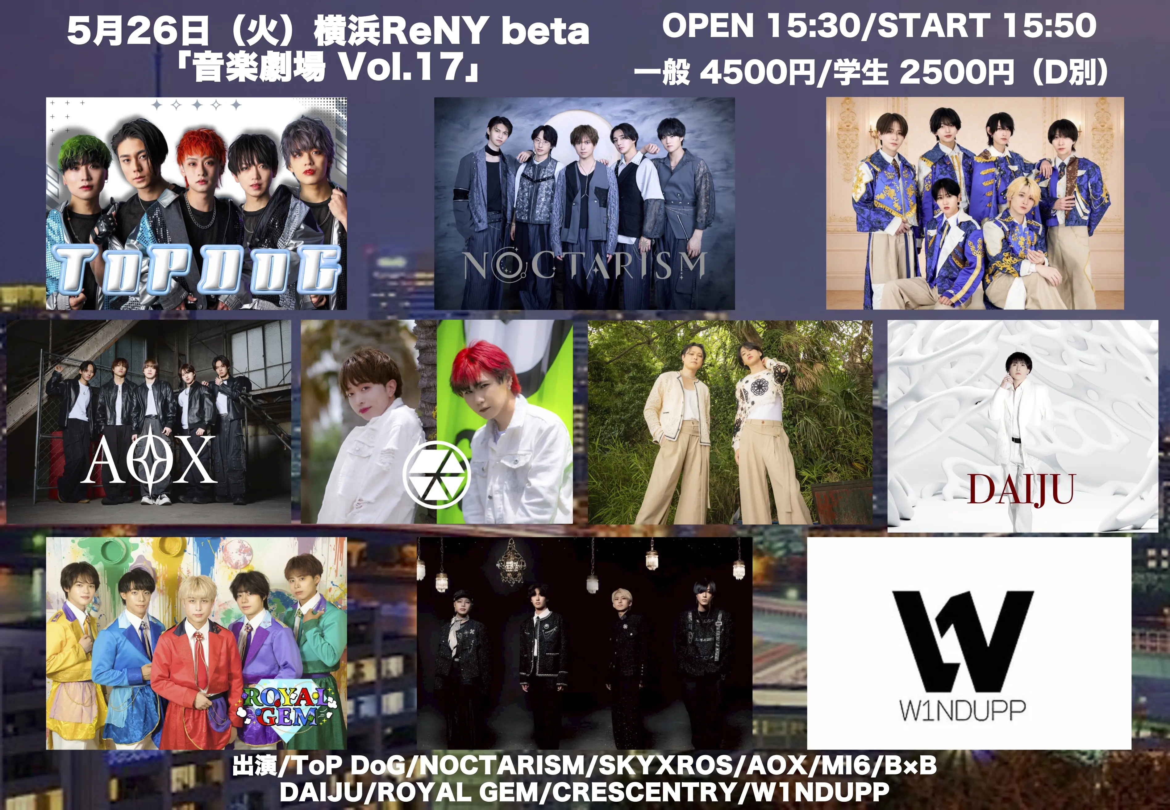 出演者 ROYAL GEM / ToP DoG / NOCTARISM / SKYXROS / AOX / MI6 / BxB / CRESCENTRY / W1NDUPP / DAIJU
