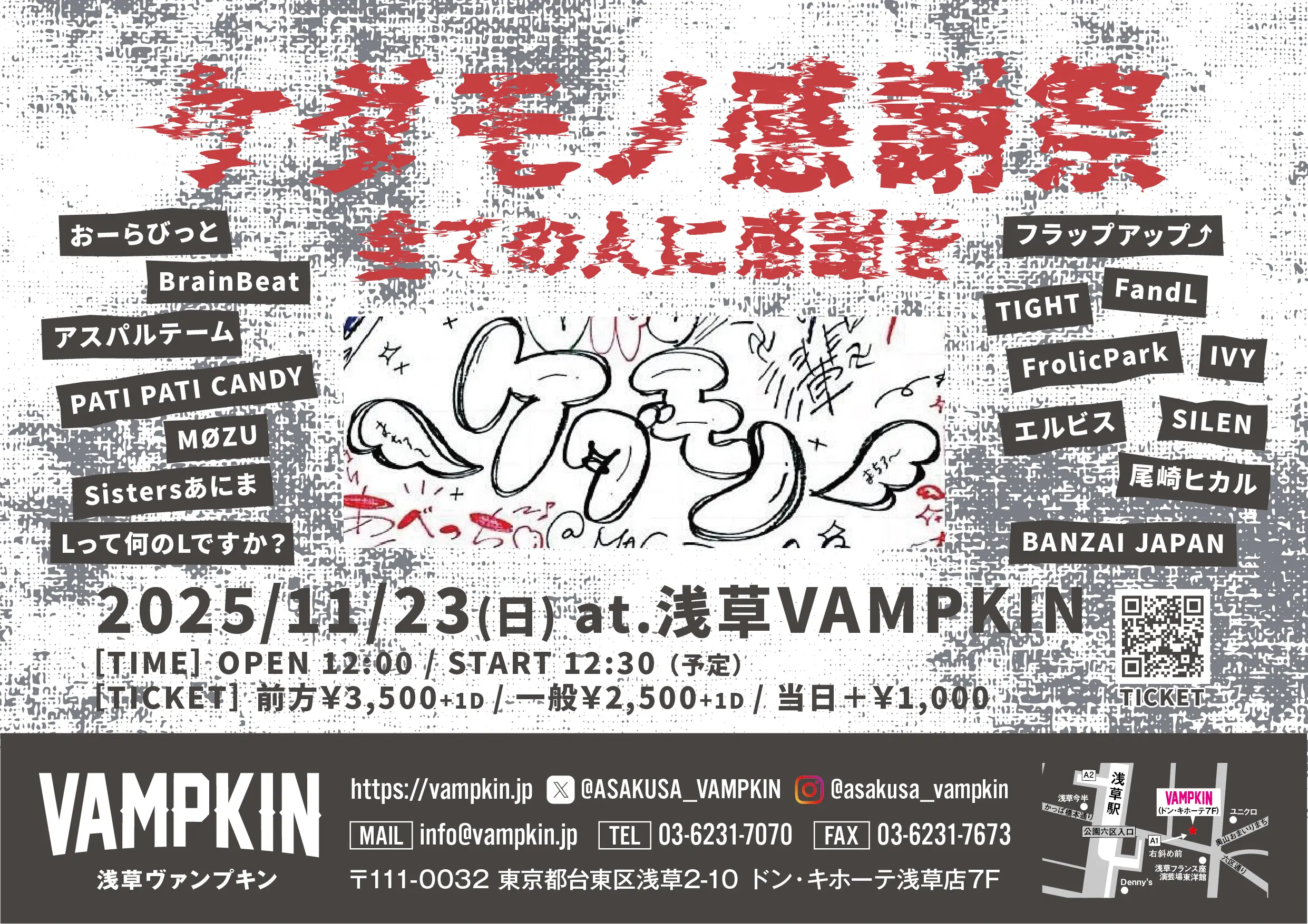 出演者 おーらびっと / BrainBeat / アスパルテーム / PATI PATI CANDY / Sistersあにま / Lって何のLですか? / フラップアップ⤴︎ / FandL / IVY / SILEN / 尾崎ヒカル / MØZU / BANZAI JAPAN / TIGHT / Frolic Park / エルビス