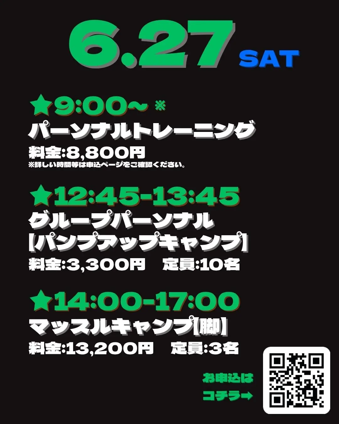 6月27日坂本陽斗パーソナル&マッスルキャンプデイ