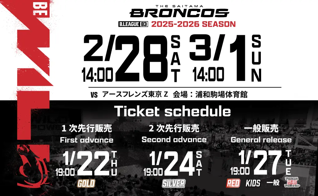 2/28(土) さいたまブロンコスvsアースフレンズ東京Z 2025-26SEASON プロバスケットボールB3リーグ公式戦