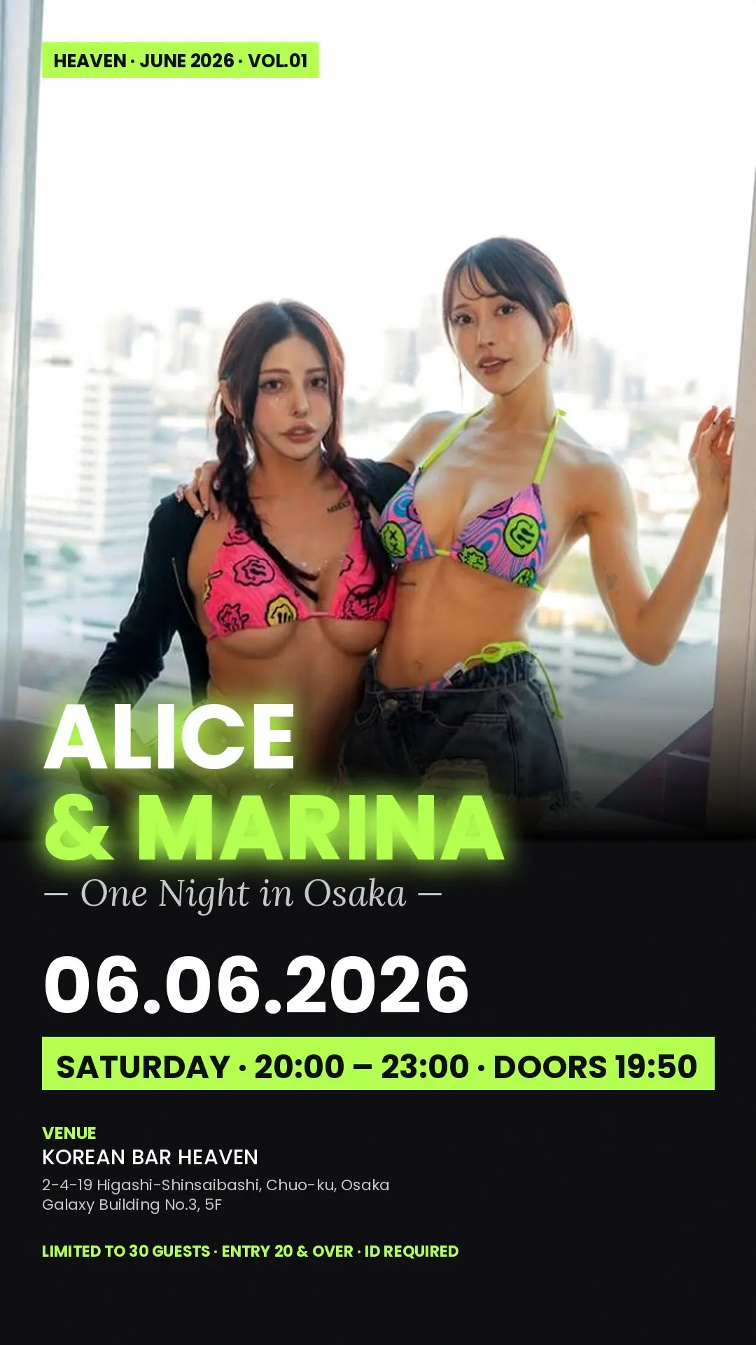 【30名限定】七瀬アリス × 池田マリナ 一夜限りのスペシャルナイト in 大阪・心斎橋