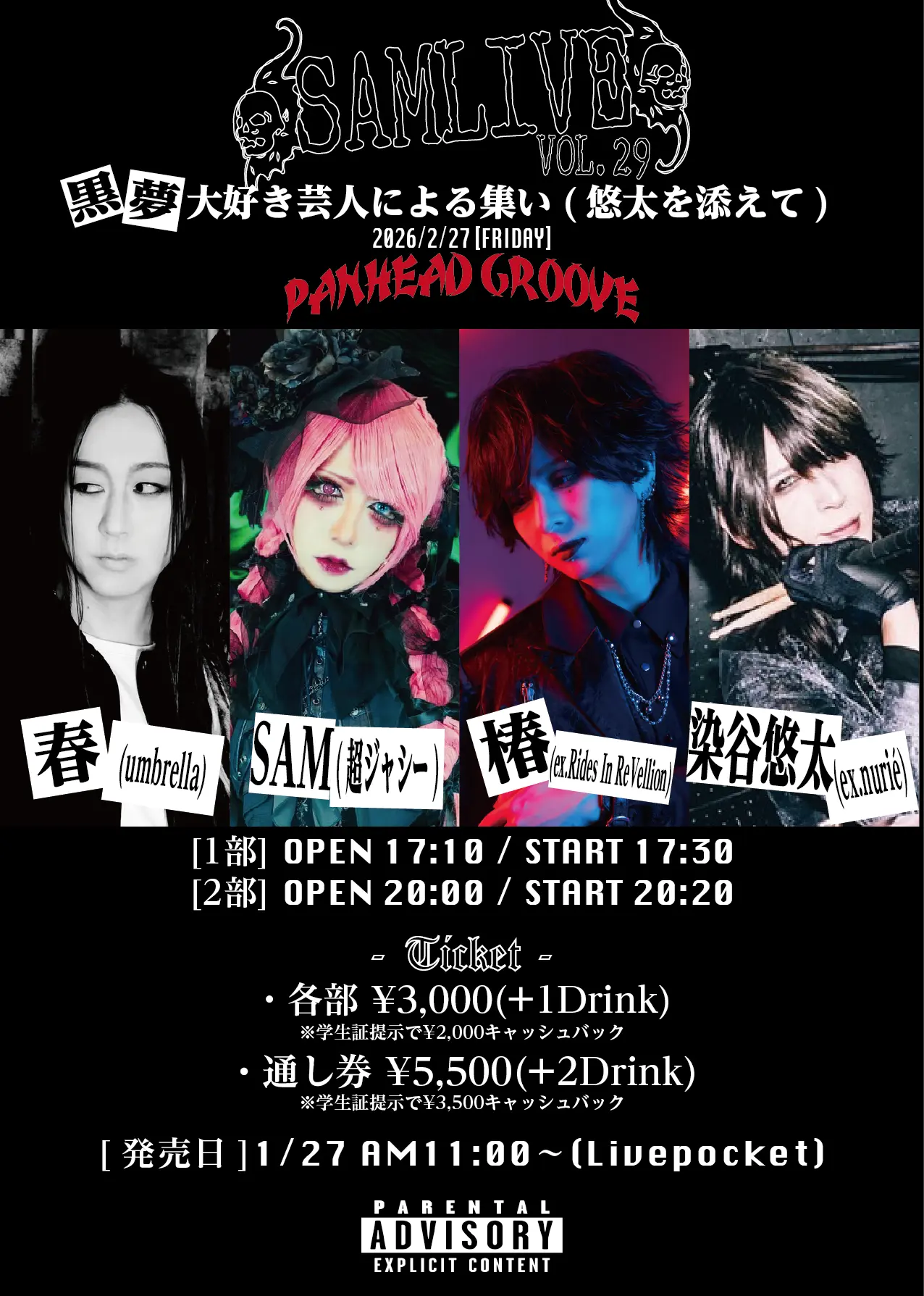 出演者 SAM(超ジャシー) / 春(umbrella) / 椿(ex.Rides In ReVellion) / 染谷悠太(ex.nurié)