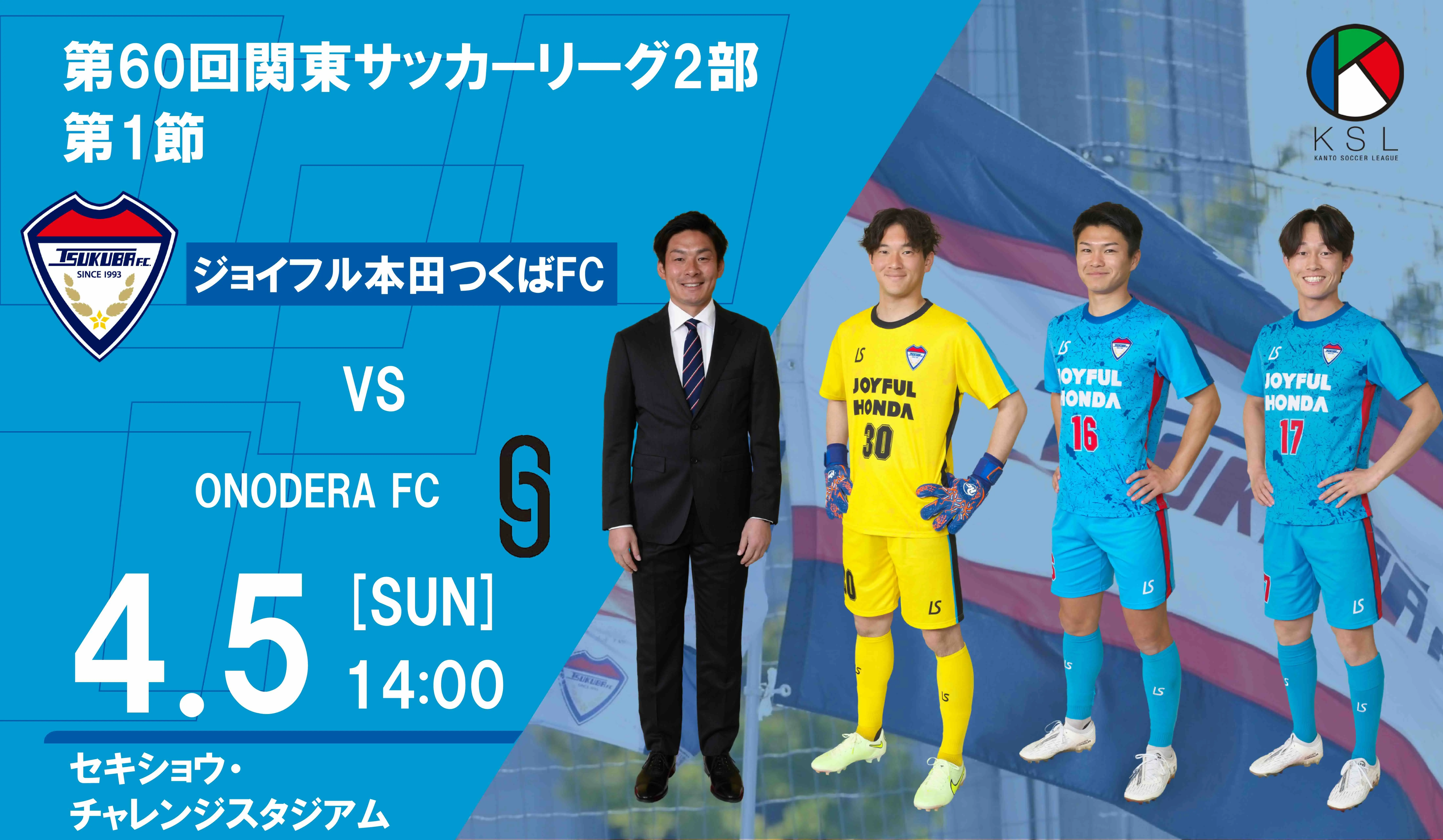 4/5(日)14時キックオフ 第60回関東サッカーリーグ2部第1節 ジョイフル本田つくばFC vs ONODERA FC