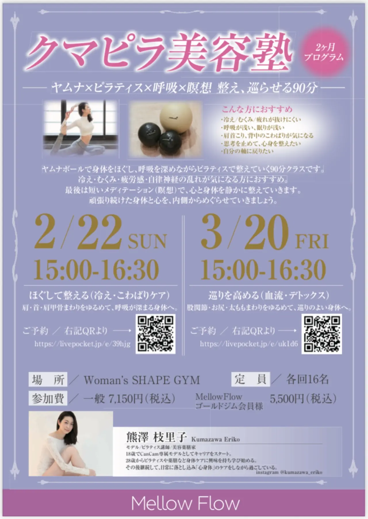 クマピラ美容塾― ヤムナ×ピラティス×呼吸×瞑想 整え、巡らせる90分 ―