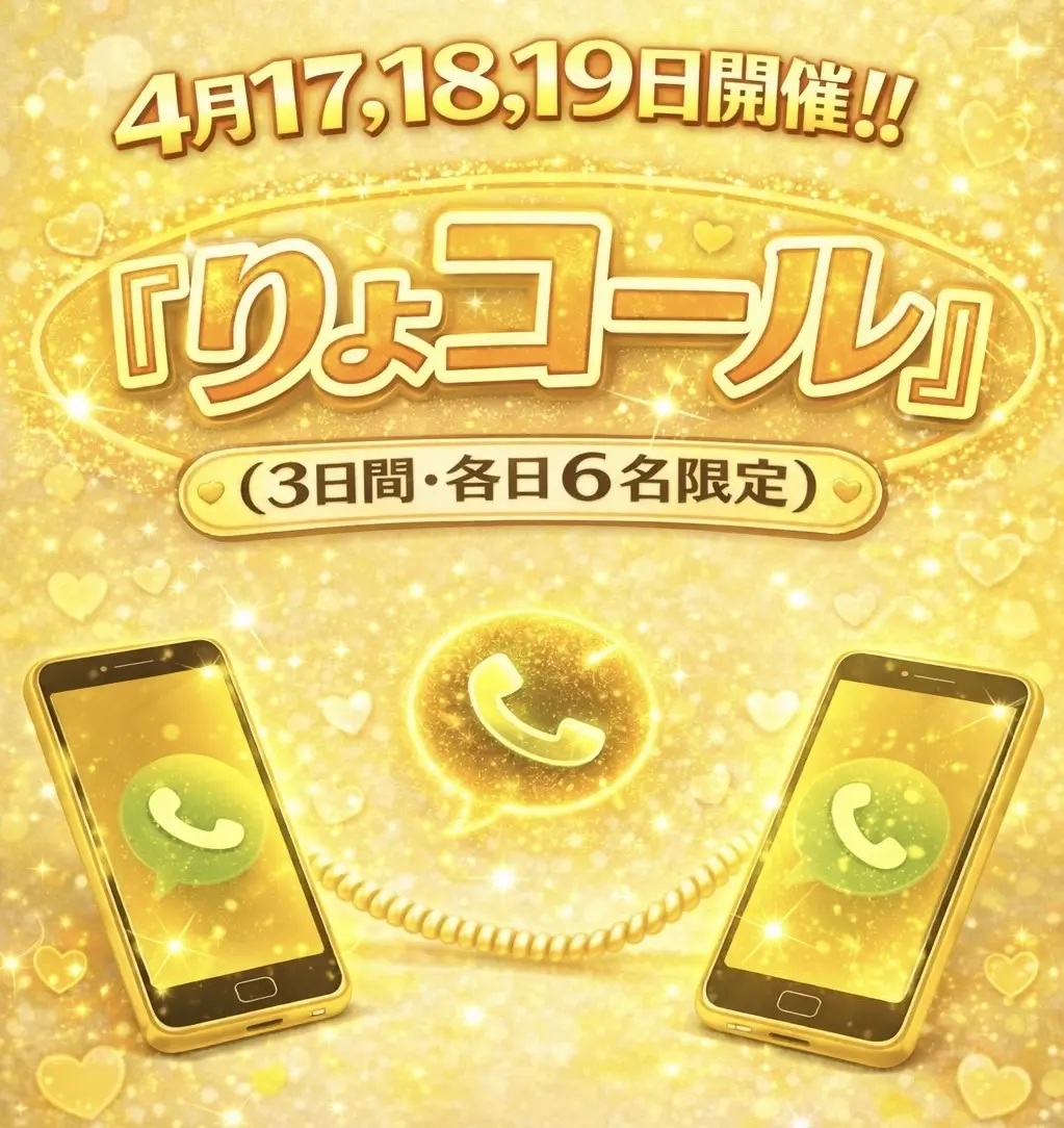 4月17,18,19日開催‼︎ 『りょコール』 (3日間・各日6名限定)