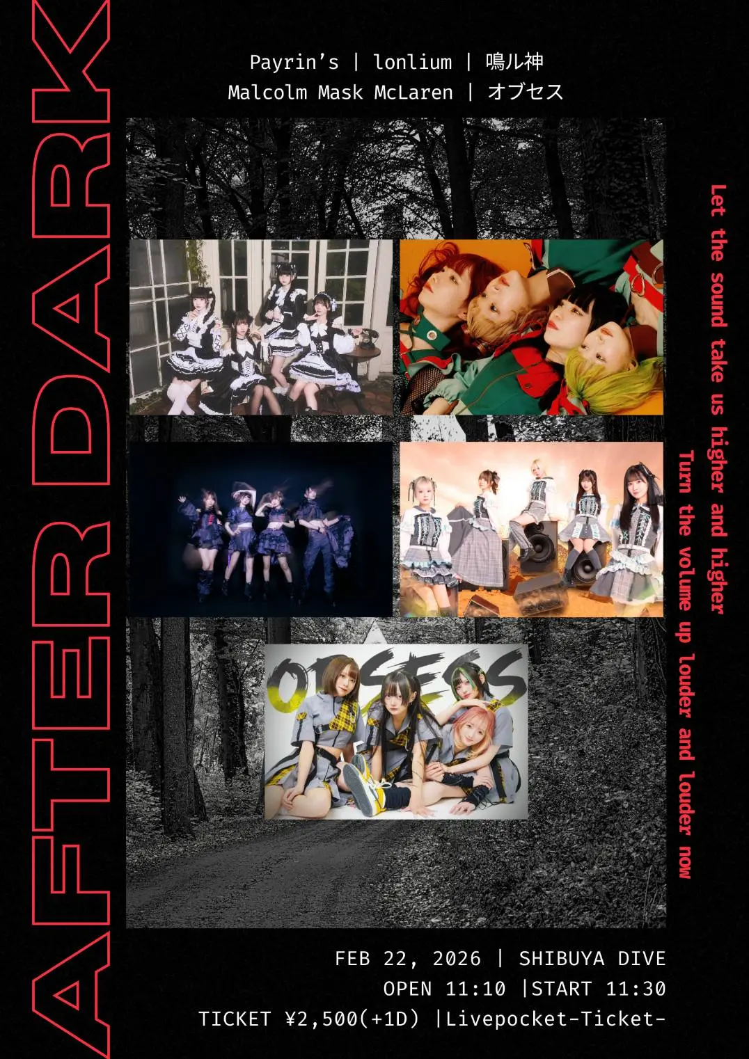 出演者 オブセス / 鳴ル神 / lonlium / Payrin's / Malcolm Mask McLaren