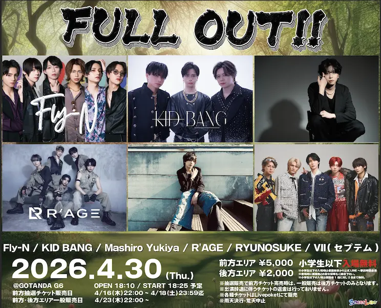 出演者 R'AGE / RYUNOSUKE / Ⅶ(セプテム) / KID BANG / Mashiro Yukiya / Fly-N