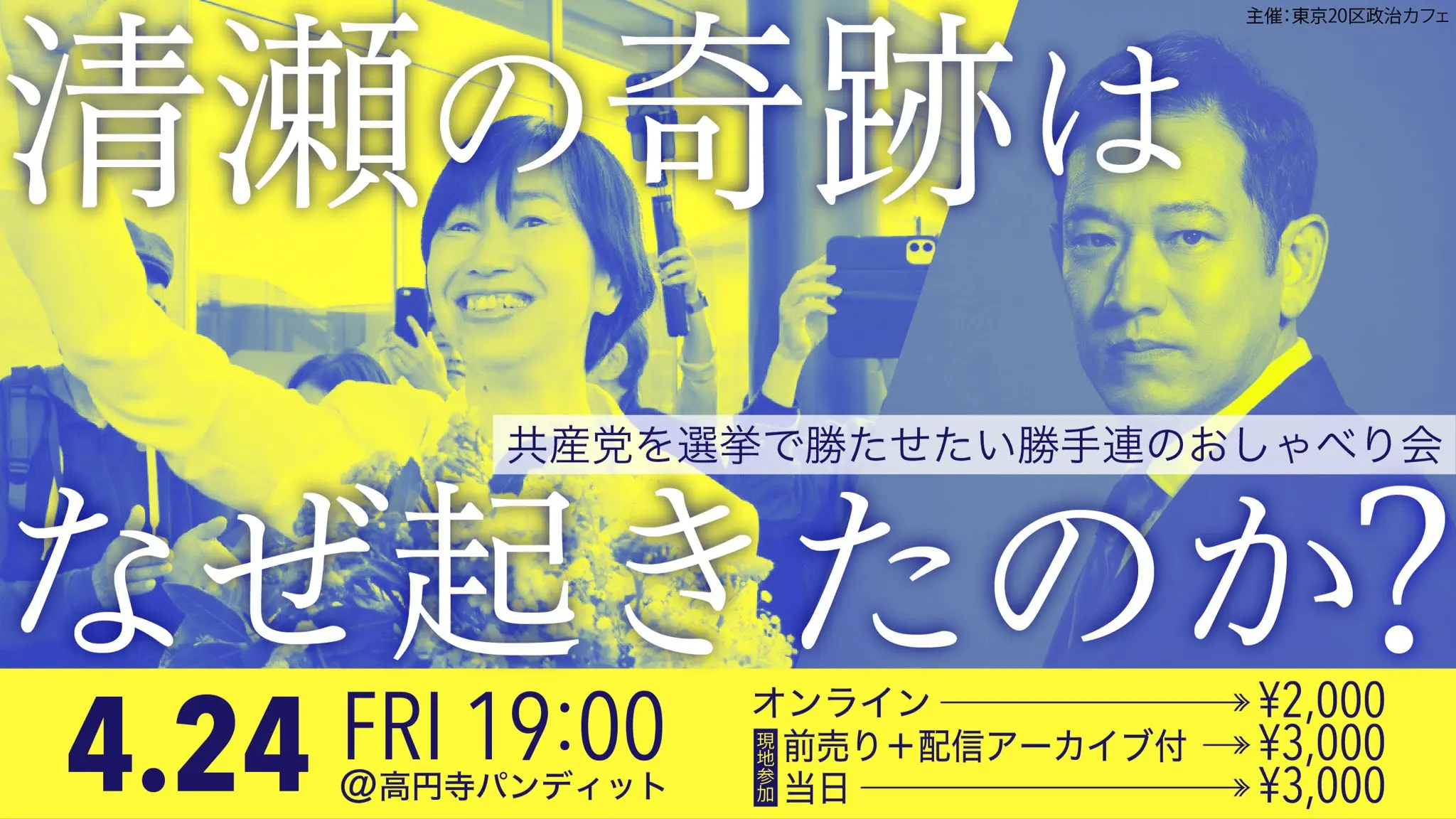 4月24日(金)『清瀬の奇跡はなぜ起きたのか?』共産党を選挙で勝たせたい勝手連のおしゃべり会