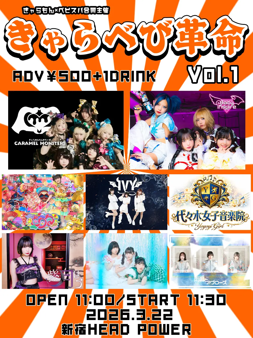 出演者 きゃらめるもんすたーず / Baby inspire / IVY / とわる / 代々木女子音楽院 / 紫月はう / Mellow / 雨音とアプローズ
