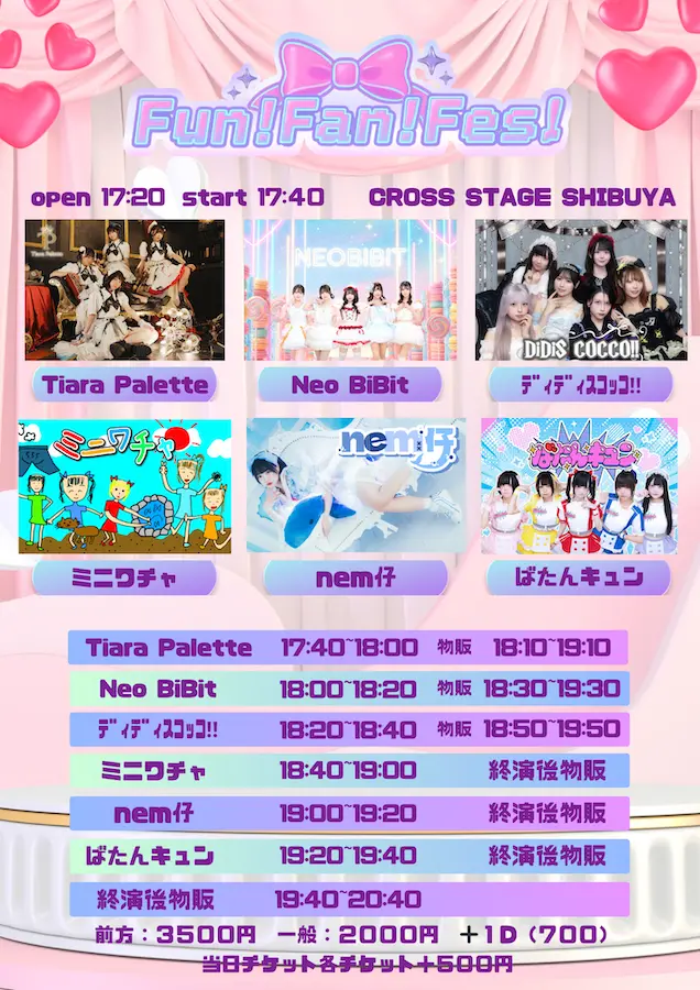 出演者 Tiara Palette / Neo BiBit / ディディスコッコ‼︎ / ミニワチャ / nem仔 / ばたんキュン