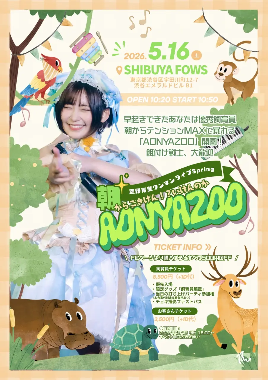 5/16(土) 渋谷FOWS『空野青空ワンマンライブSpring 「朝からごきげん!?いけんのかAONYAZOO」』