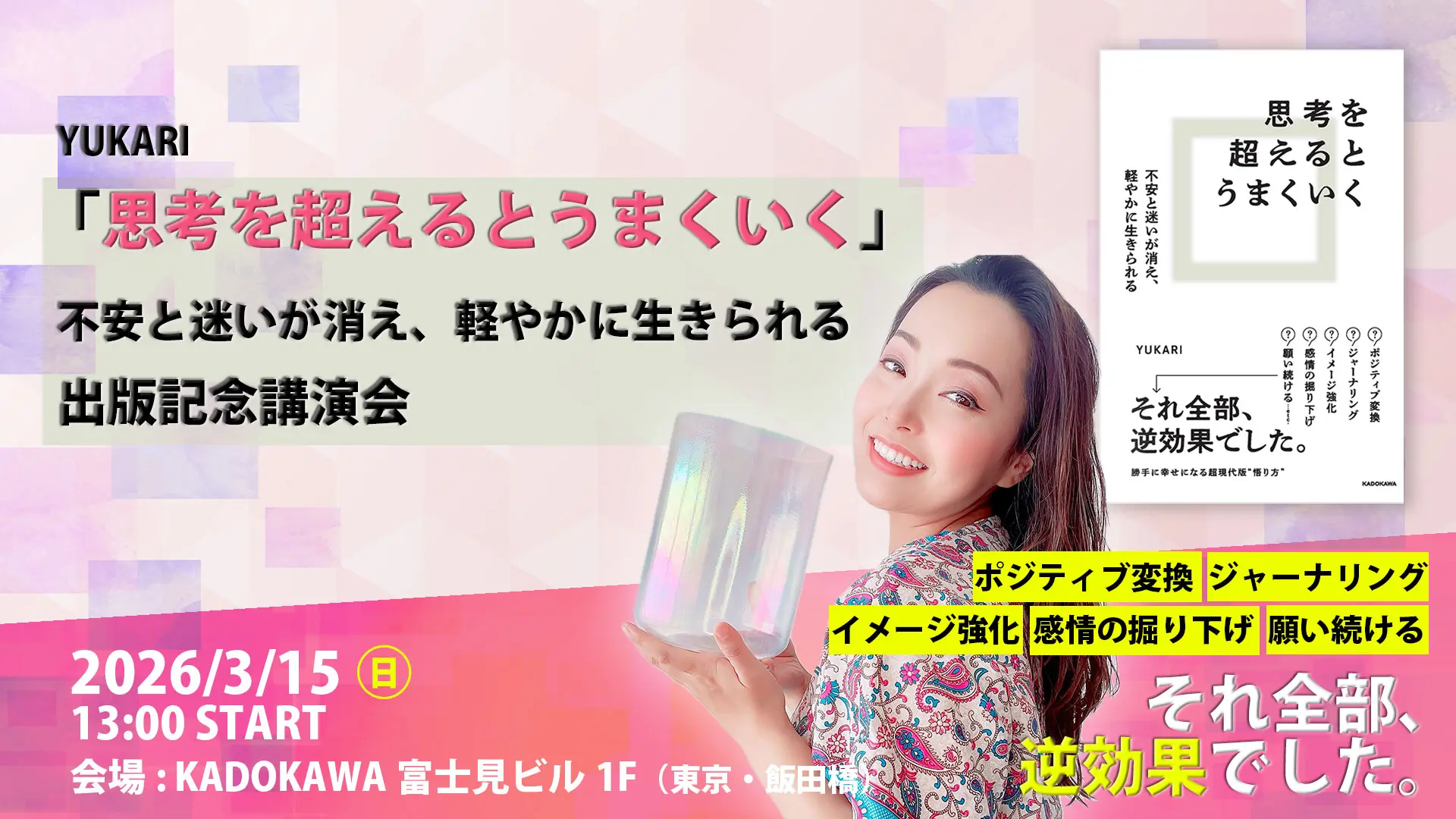 YUKARI「思考を超えるとうまくいく」~不安と迷いが消え、軽やかに生きられる~出版記念講演会【26年3月15日(日)開催】