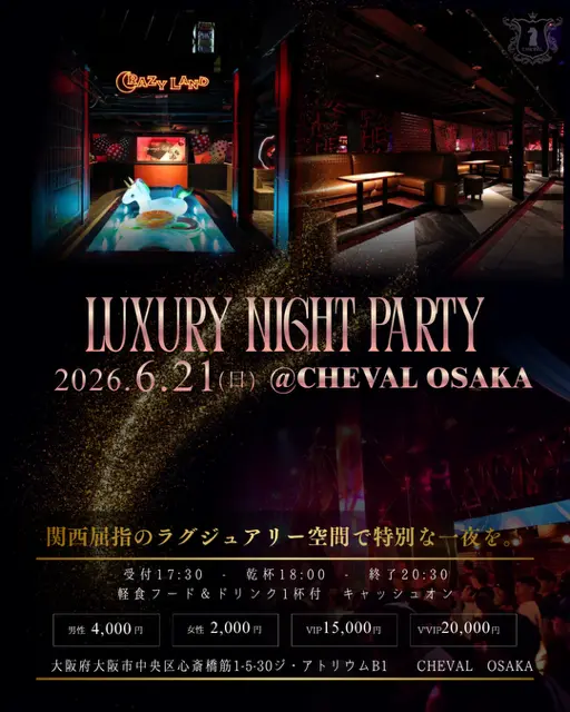 6/21(日)17:30~200名【Special Party Event】in『CHEVAL OSAKA (Crazy Land)(シュバル貸切)』の招待状【非日常の空間で新しい出会い・刺激・繋がりが一気に広がる一夜をお届け】