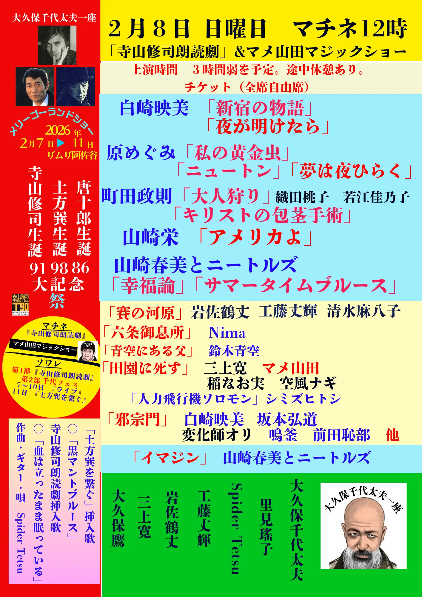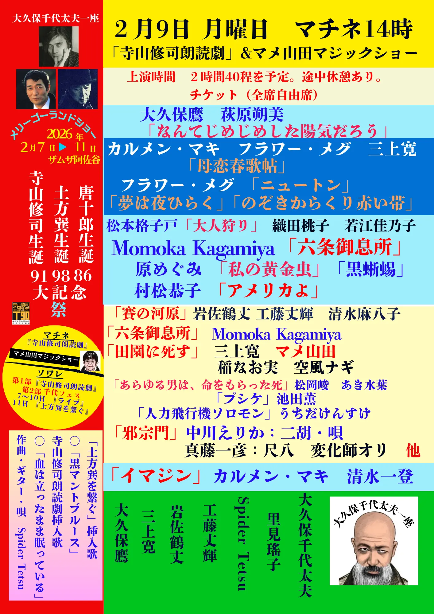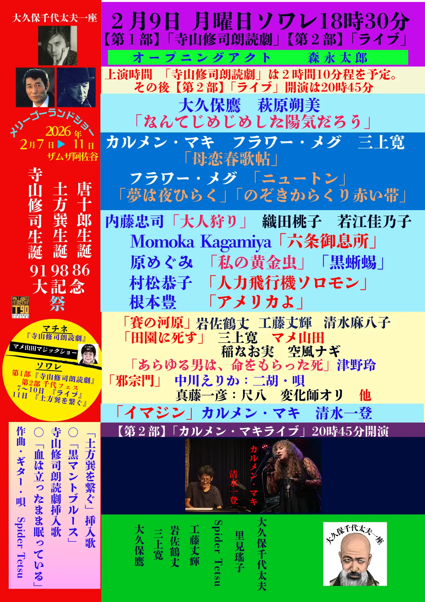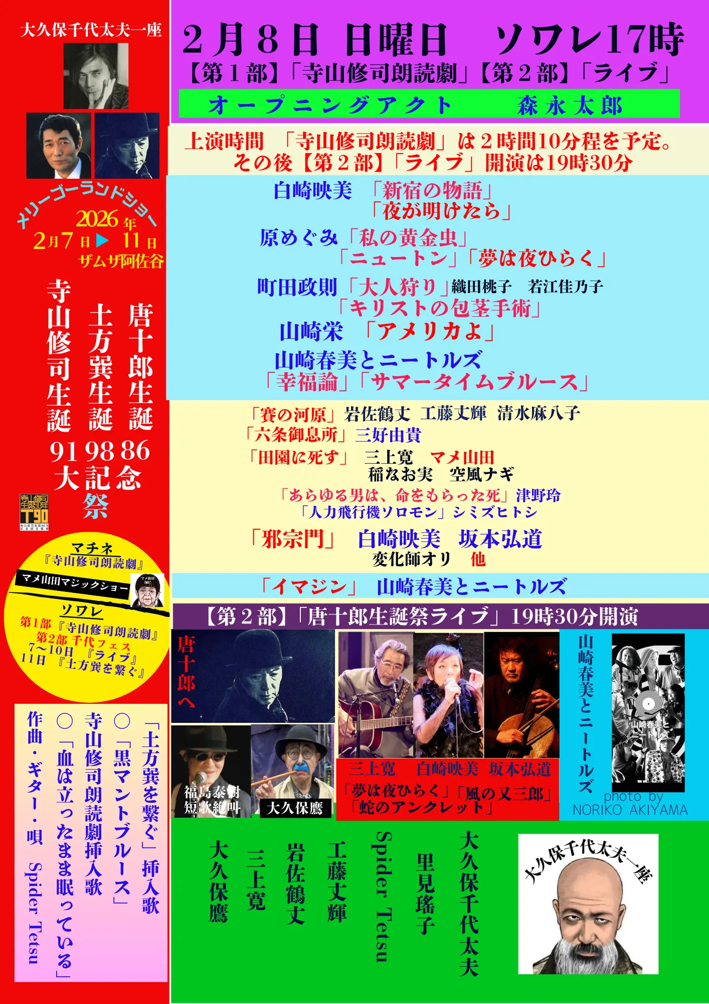 【カンフェティ/寺山修司生誕91土方巽生誕98唐十郎生誕86 大記念祭】2月8日ソワレ第1部「寺山修司朗読劇」第2部千代フェス「唐十郎生誕祭ライブ」