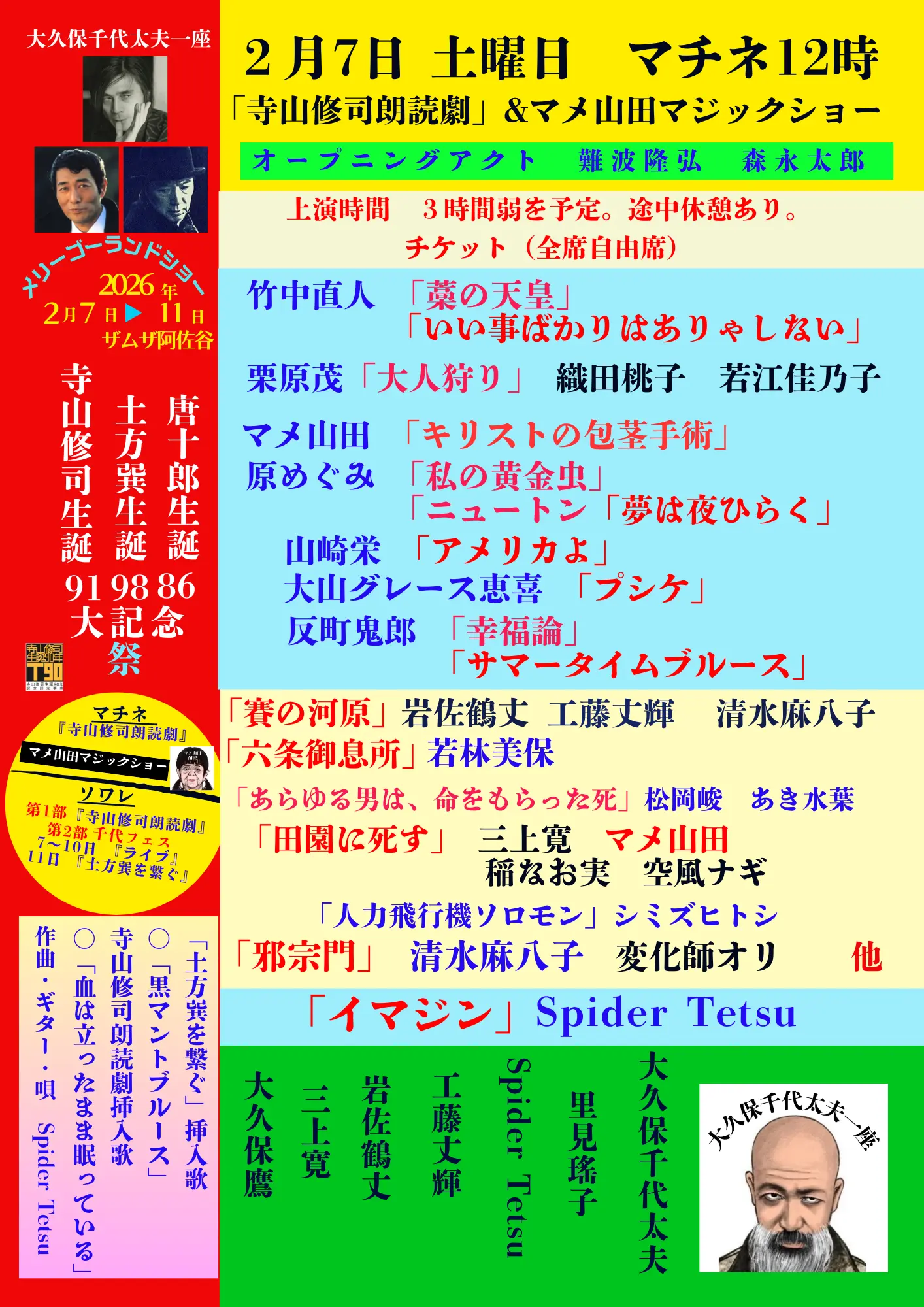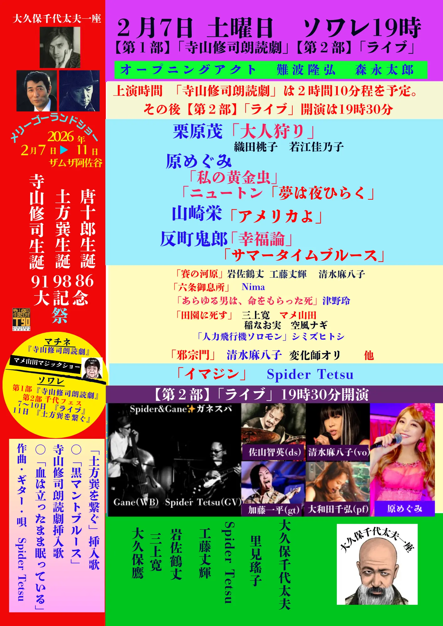 【カンフェティ/寺山修司生誕91土方巽生誕98唐十郎生誕86 大記念祭】2月7日ソワレ第1部「寺山修司朗読劇」第2部千代フェス「ライブ」