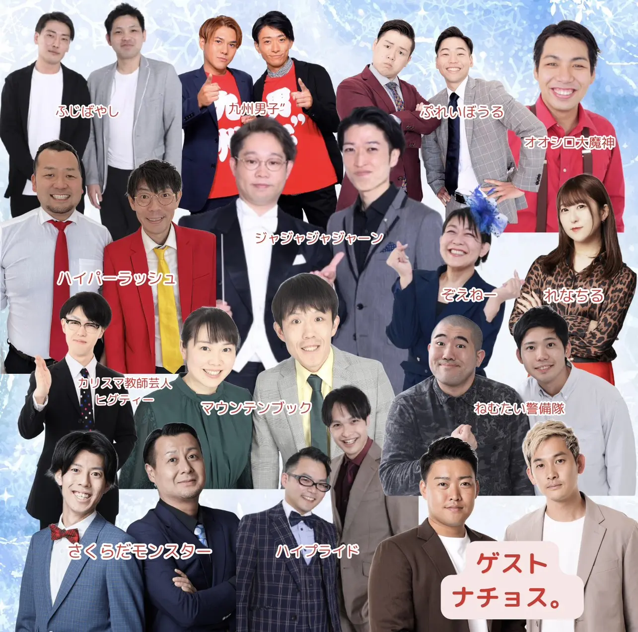 出演者 オオシロ大魔神 / ハイプライド / マウンテンブック / ハイパーラッシュ / ぷれいぼうる / さくらだモンスター / カリスマ教師芸人ヒグティー / ぞえねー / ジャジャジャジャーン / れなちる / 九州男子" / ふじばやし / ねむたい警備隊 / ナチョス。