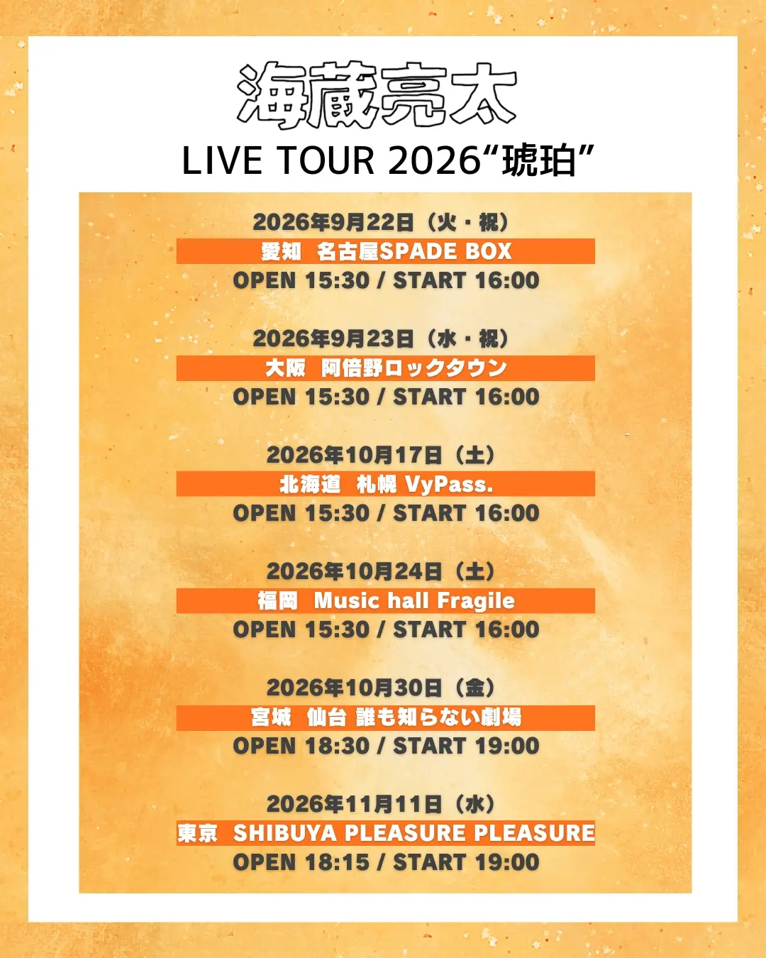 海蔵亮太 LIVE TOUR 2026 “琥珀”福岡公演