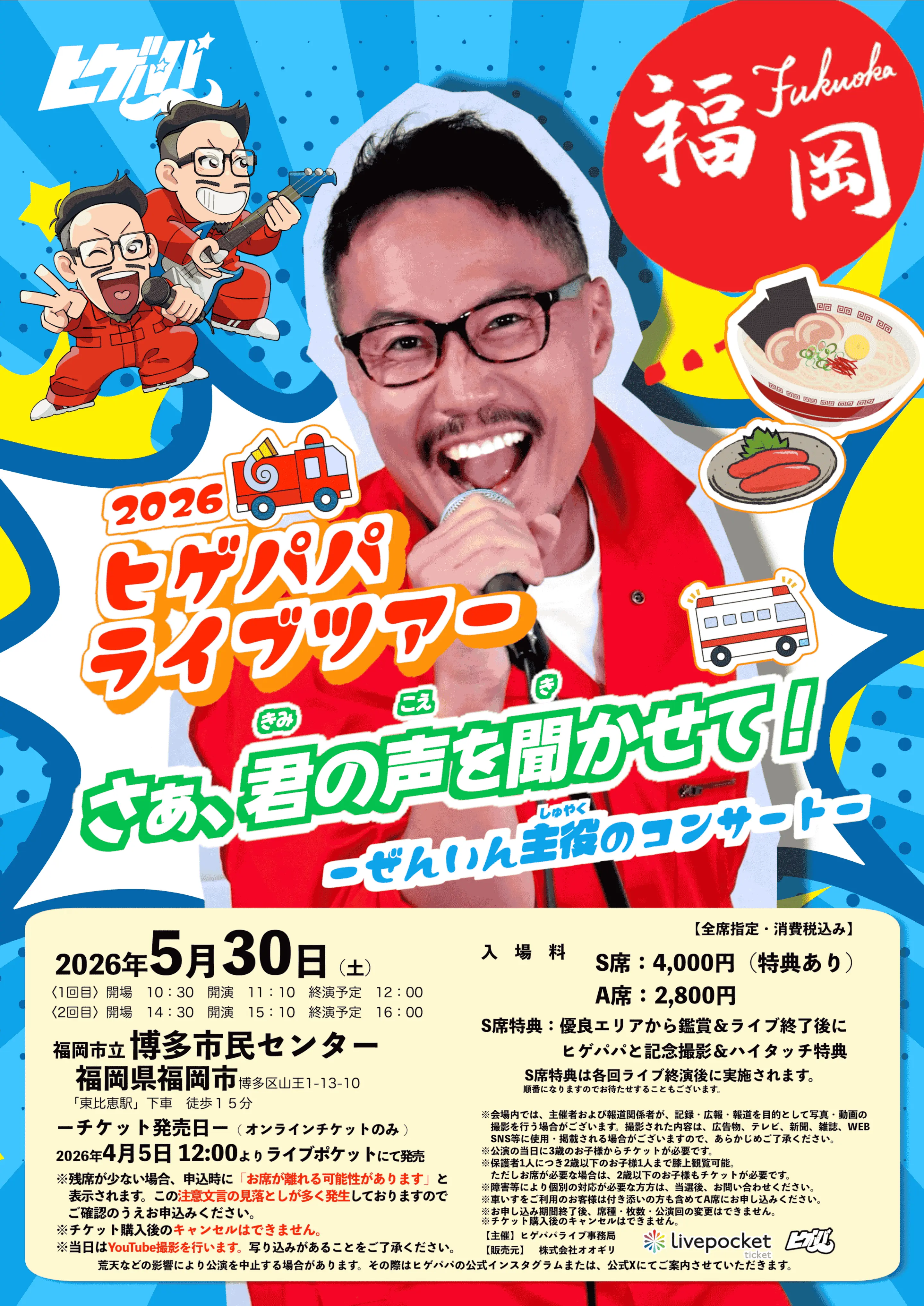 ヒゲパパ福岡単独ライブ @博多市民センター 2026年5月30日 11:10