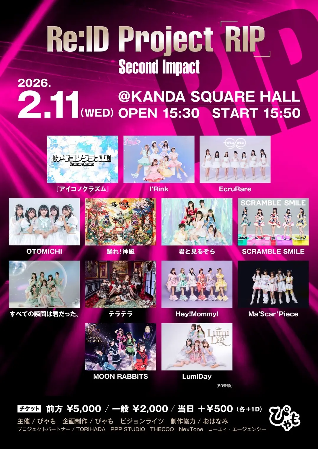 出演者 Hey!Mommy! / SCRAMBLE SMILE / Ma'Scar'Piece / テラテラ / EcruRare / LumiDay / OTOMICHI / MOON RABBiTS / I'Rink / すべての瞬間は君だった。 / 君と見るそら / 踊れ!神風