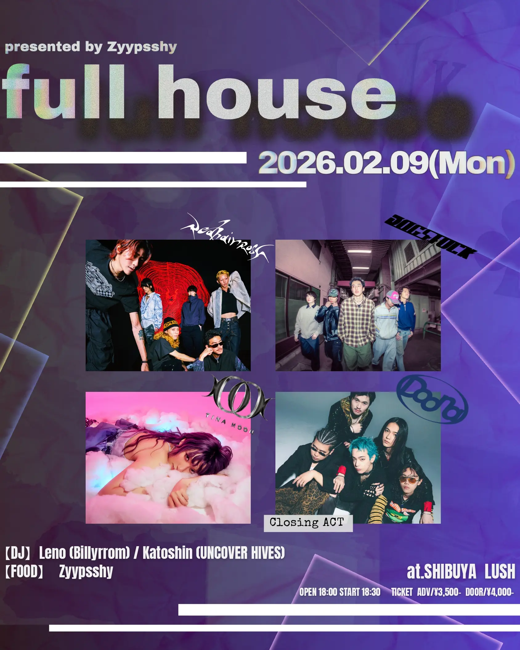 出演者 DOG STOCK / Redhair Rosy / Tina Moon / Leno (Billyrrom) / Katoshin(UNCOVER HIVES) / Doona