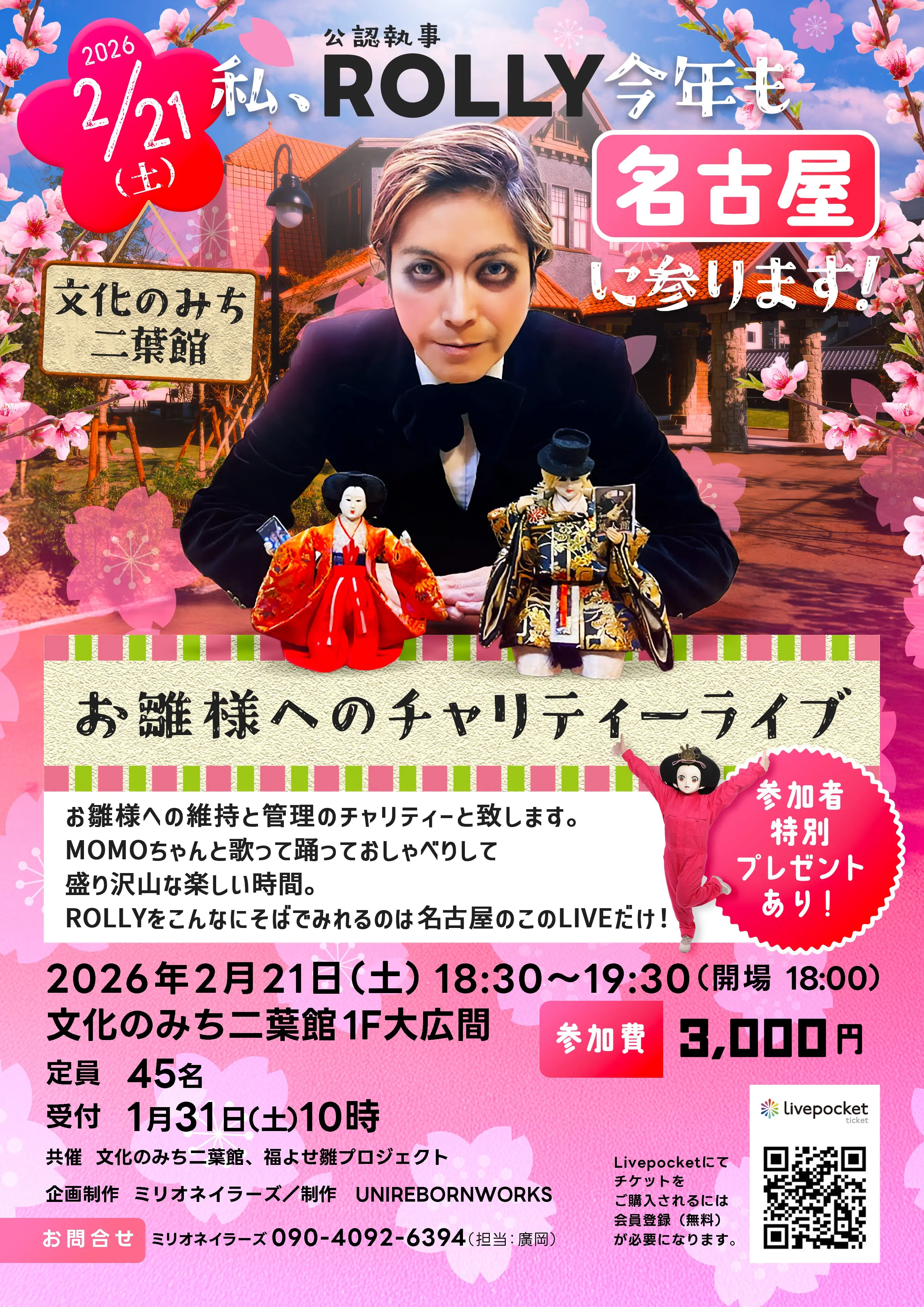 私、公認執事ROLLY今年も名古屋に参ります! お雛様へのチャリティーライブ