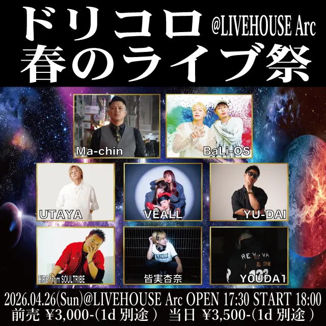 出演者 BaLi-OS / 皆実杏奈 / YU-DAI / HIRO from SOULTRIBE / VEALL / UTAYA from BlastChaps / Ma-chin / Y0UDA1