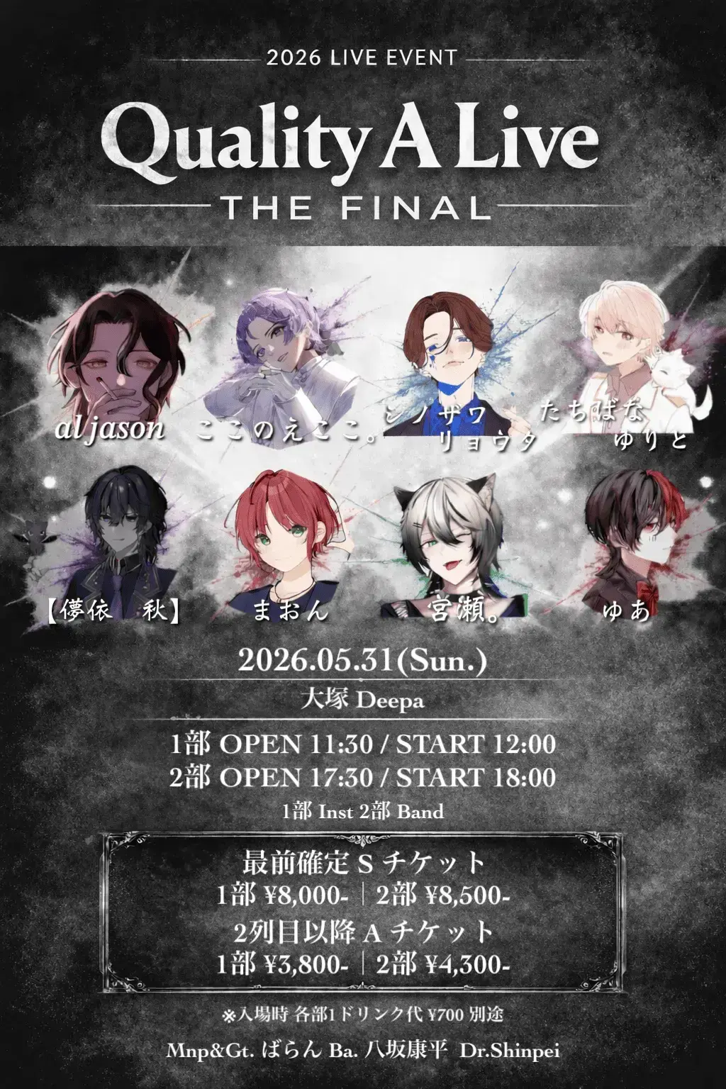 出演者 al jason / ここのえここ / シノザワリョウタ / たちばなゆりと / 【儚依 秋】 / まおん / 宮瀬。 / ゆあ