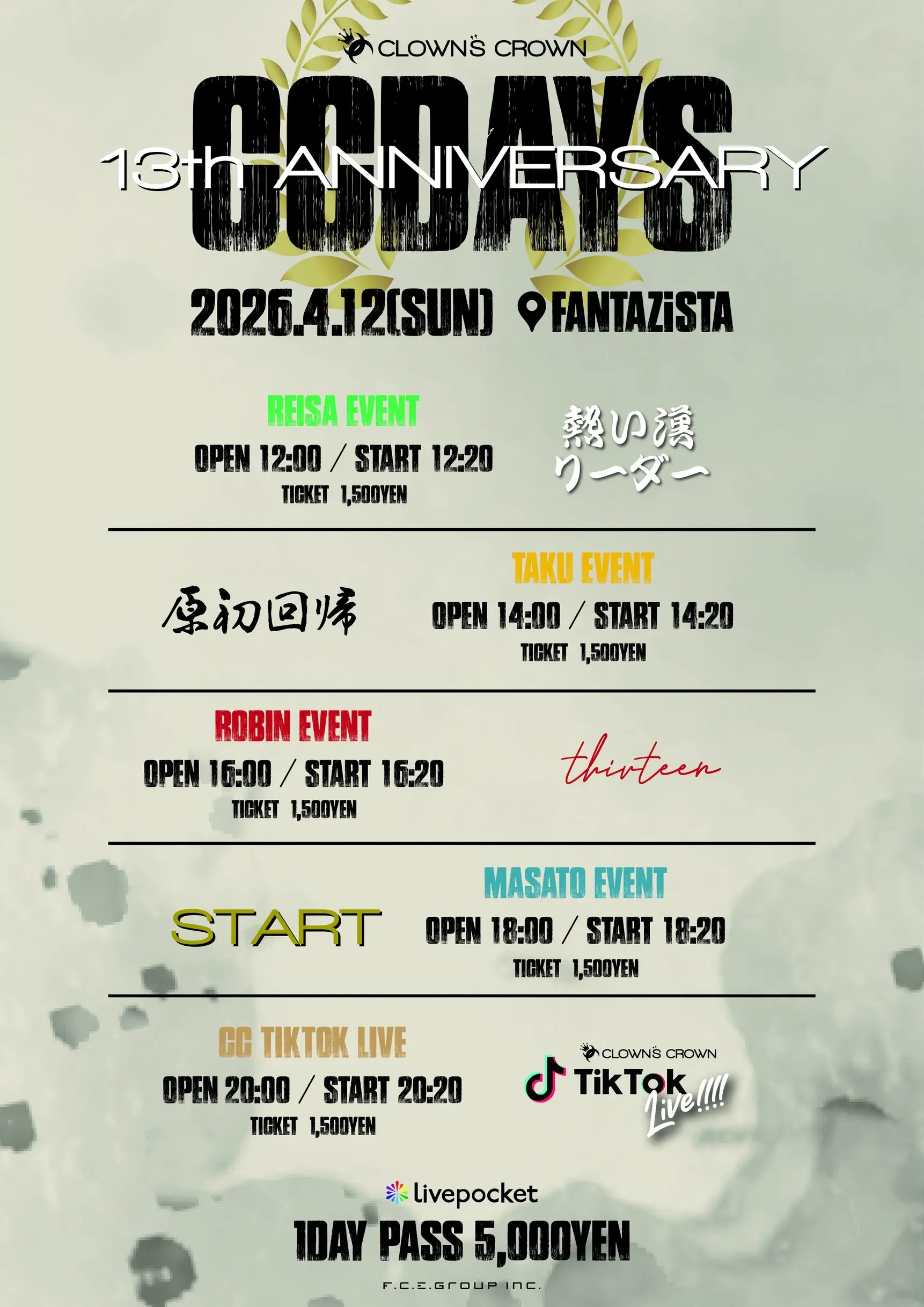 出演者 CLOWN'S CROWN / 田宮拓 / 奥地真人 / 清元励佐 / ROBIN