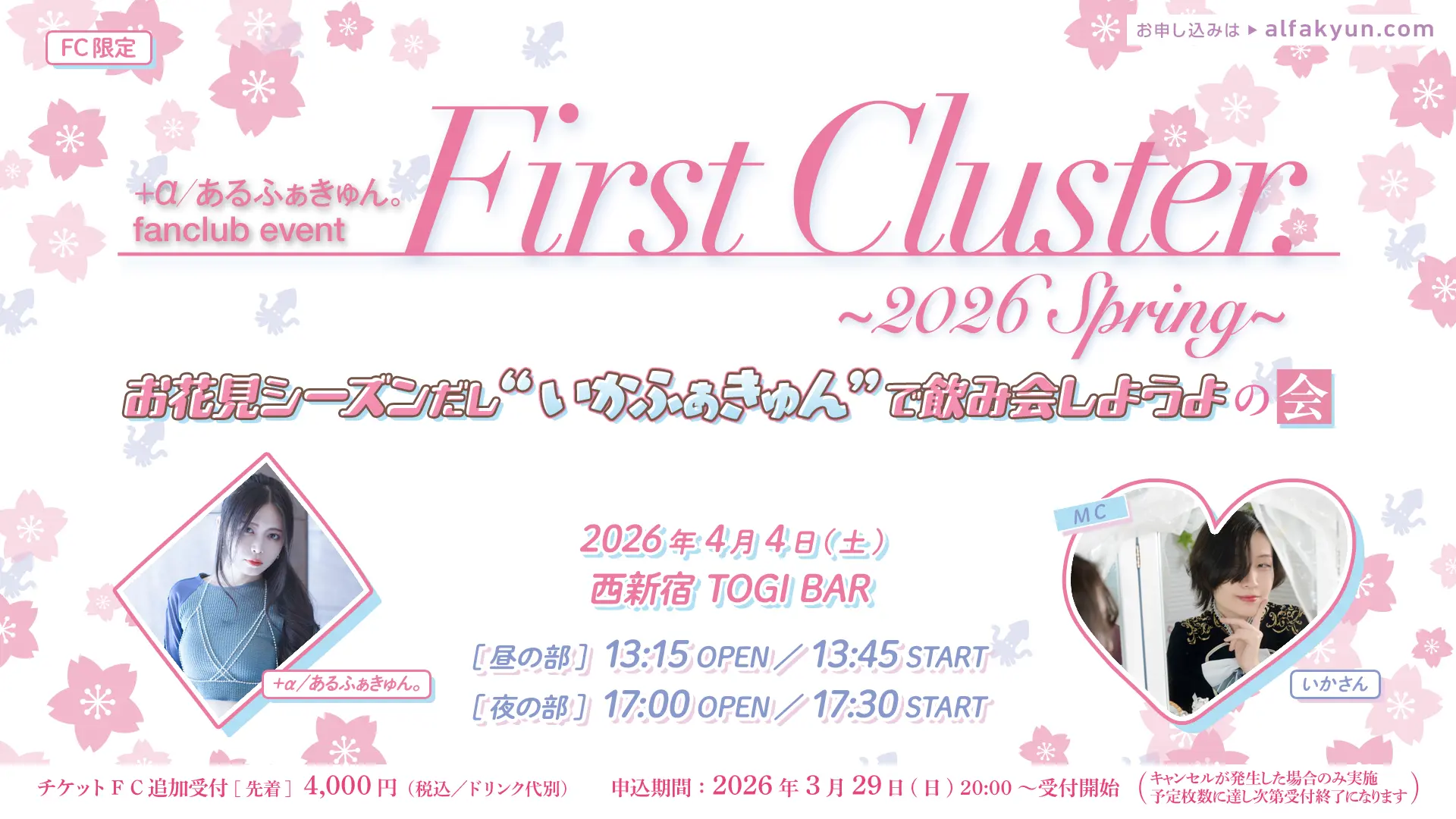 【夜の部】+α/あるふぁきゅん。「First Cluster. ~2026 Spring~ お花見シーズンだし“いかふぁきゅん”で飲み会しようよの会」