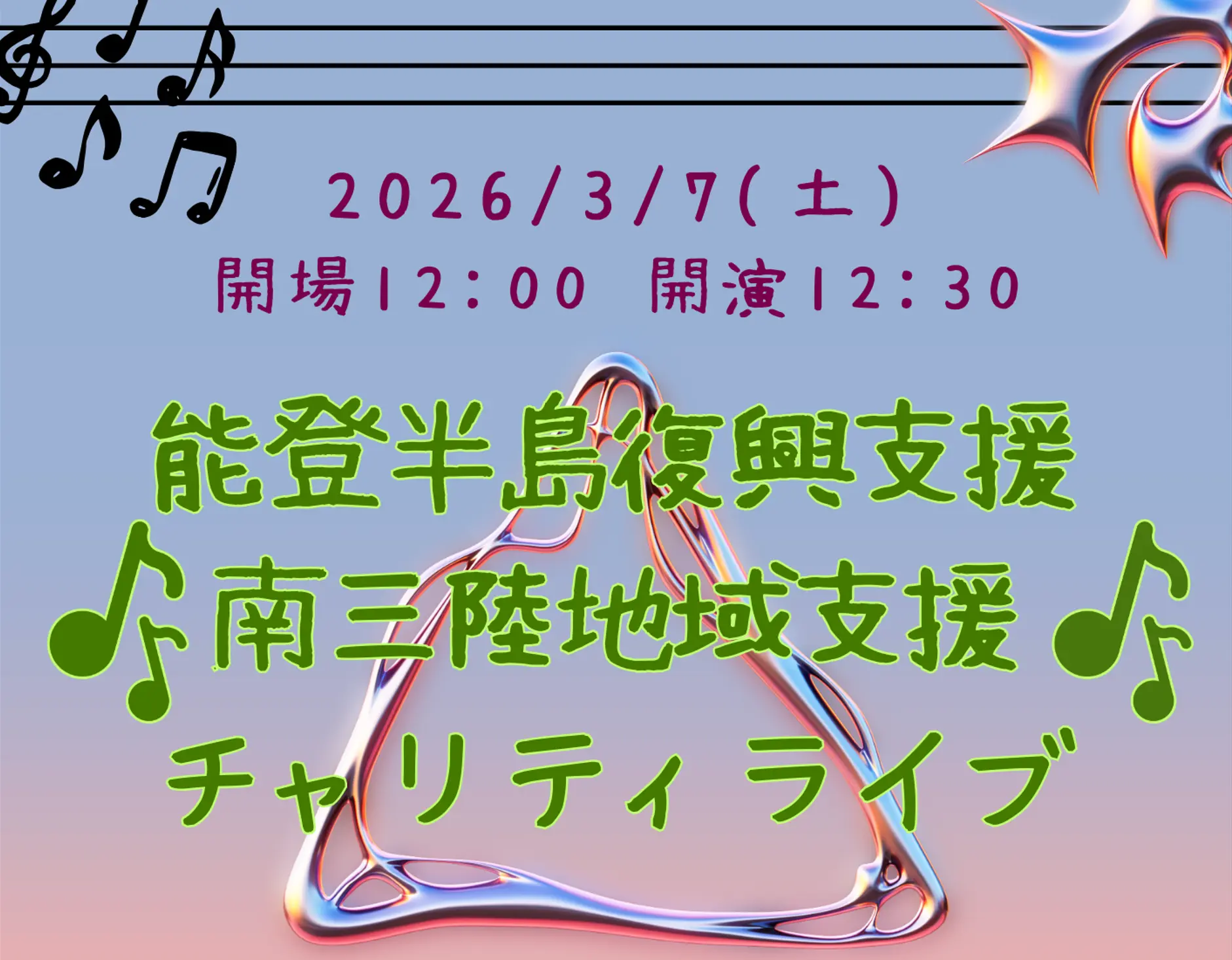 [3/7日(土)] 能登半島復興支援/南三陸地域支援チャリティライブ2026
