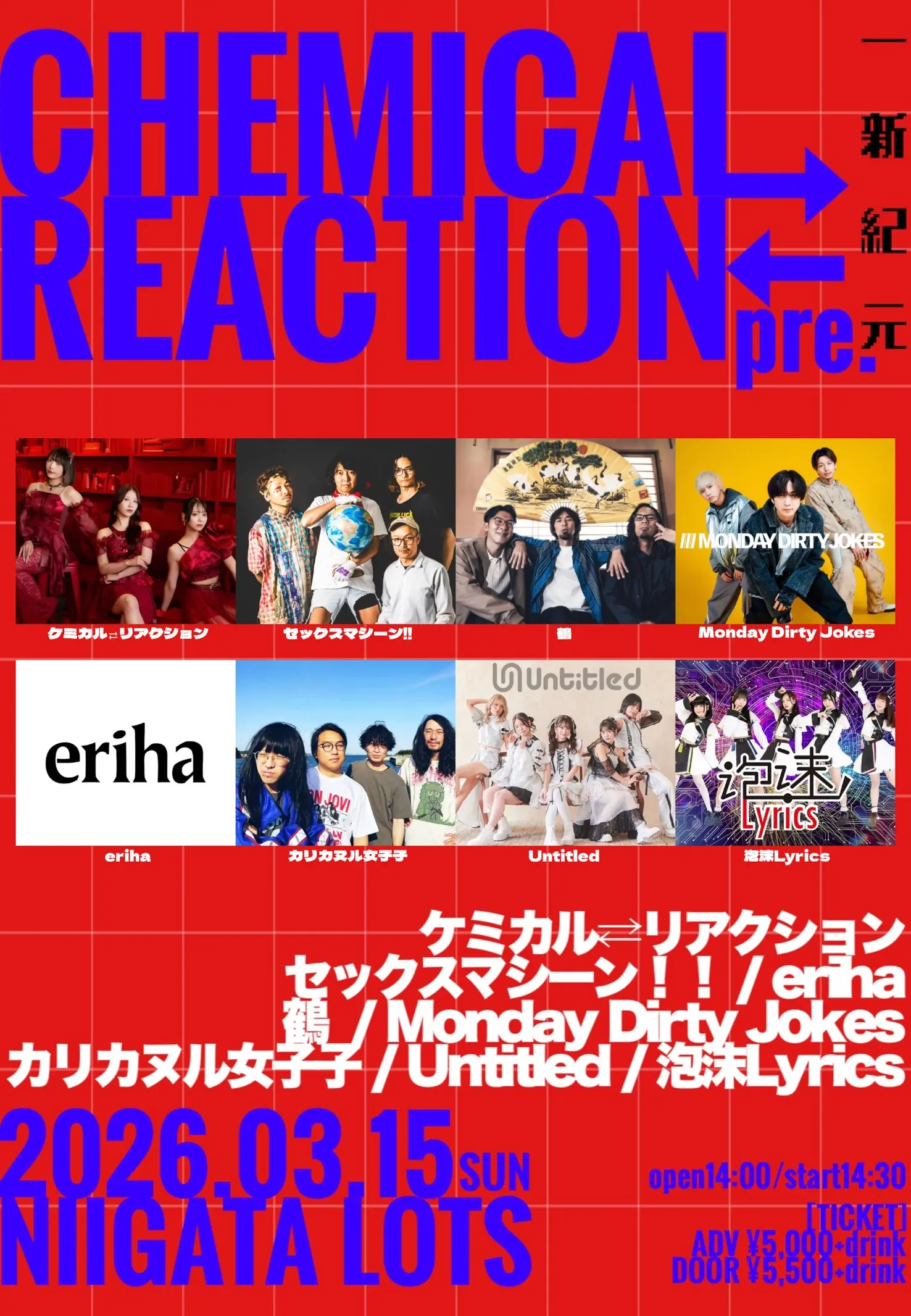 出演者 ケミカル⇄リアクション / 泡沫Lyrics / Untitled / カリカヌル女子子 / 鶴 / Monday Dirty Jokes / セックスマシーン!! / eriha