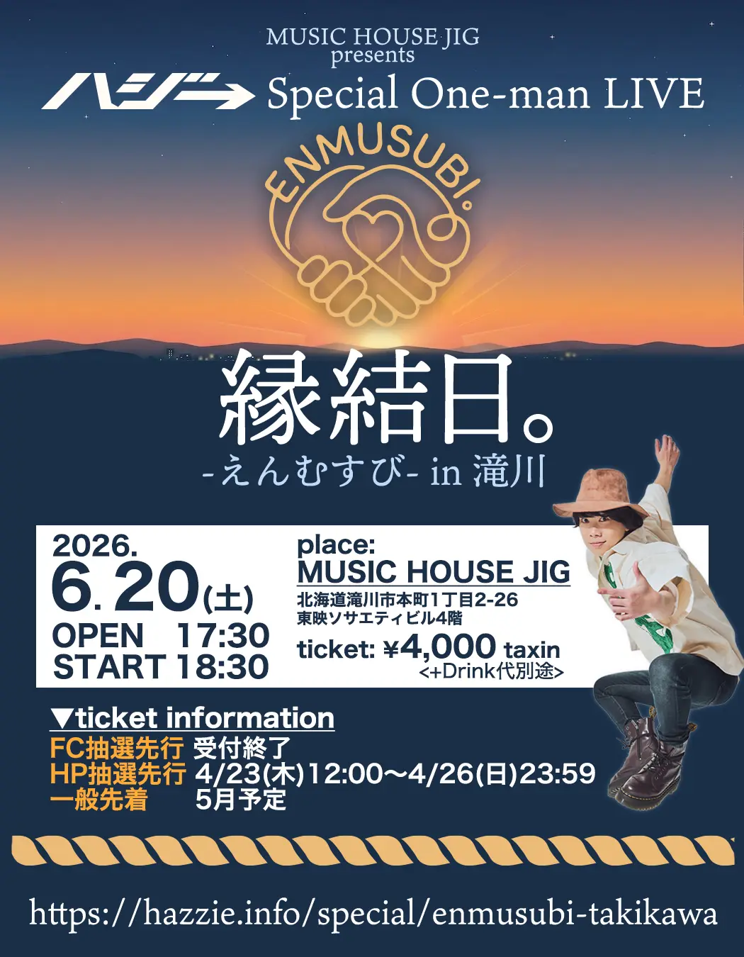 ハジ→ Special One-man LIVE「縁結日。-えんむすび- in 滝川」
