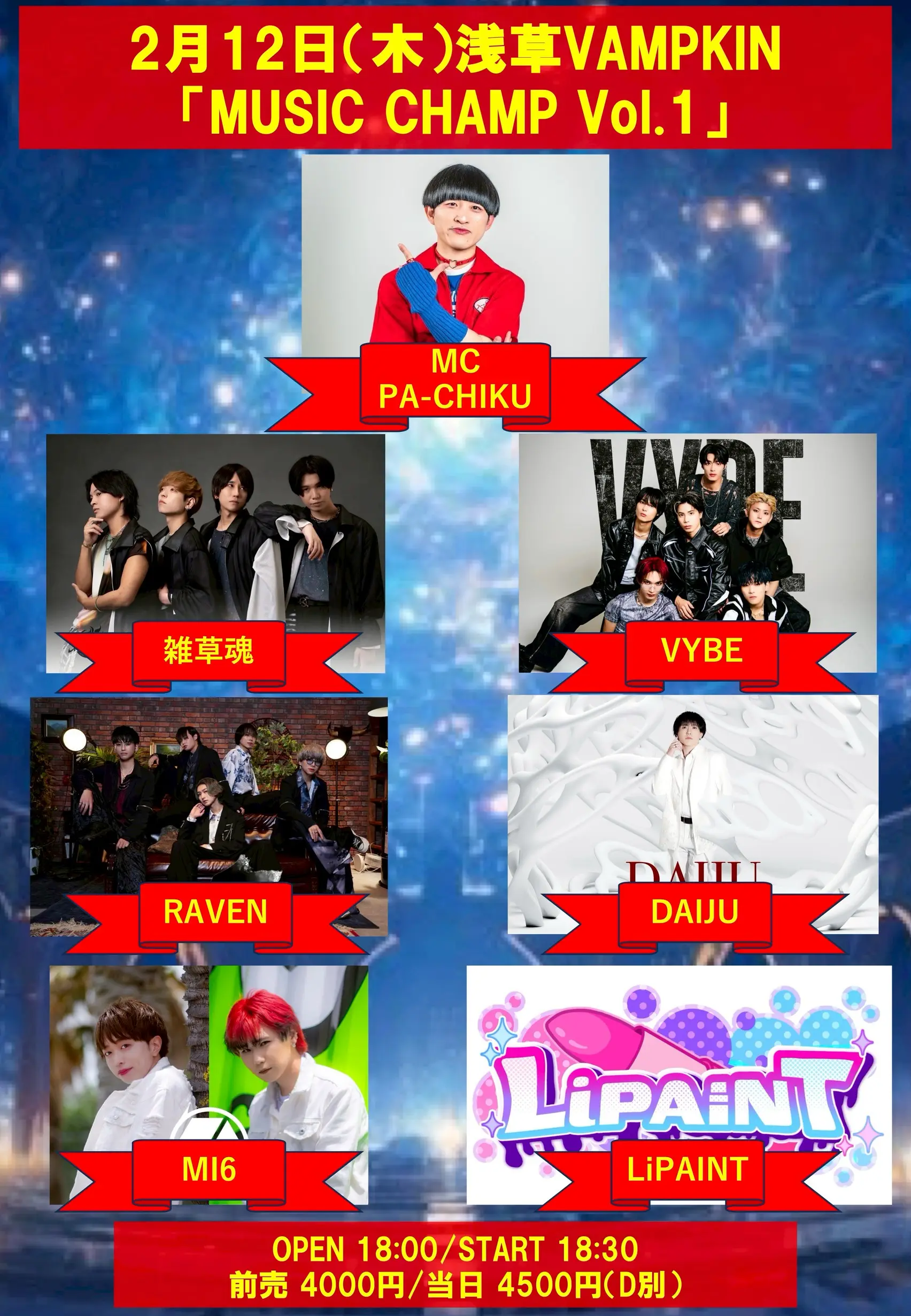 出演者 RAVEN / MI6 / VYBE / DAIJU / LiPAINT / 雑草魂 / PA-CHIKU