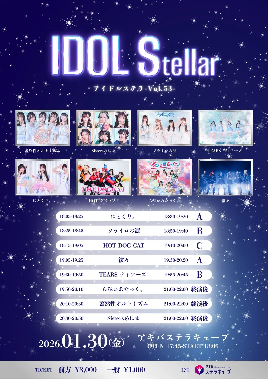 出演者 蓋然性オルトイズム / Sistersあにま / TEARS-ティアーズ- / にとくり。 / ソライロの涙 / HOT DOG CAT / らびゅあたっく。 / 縷々