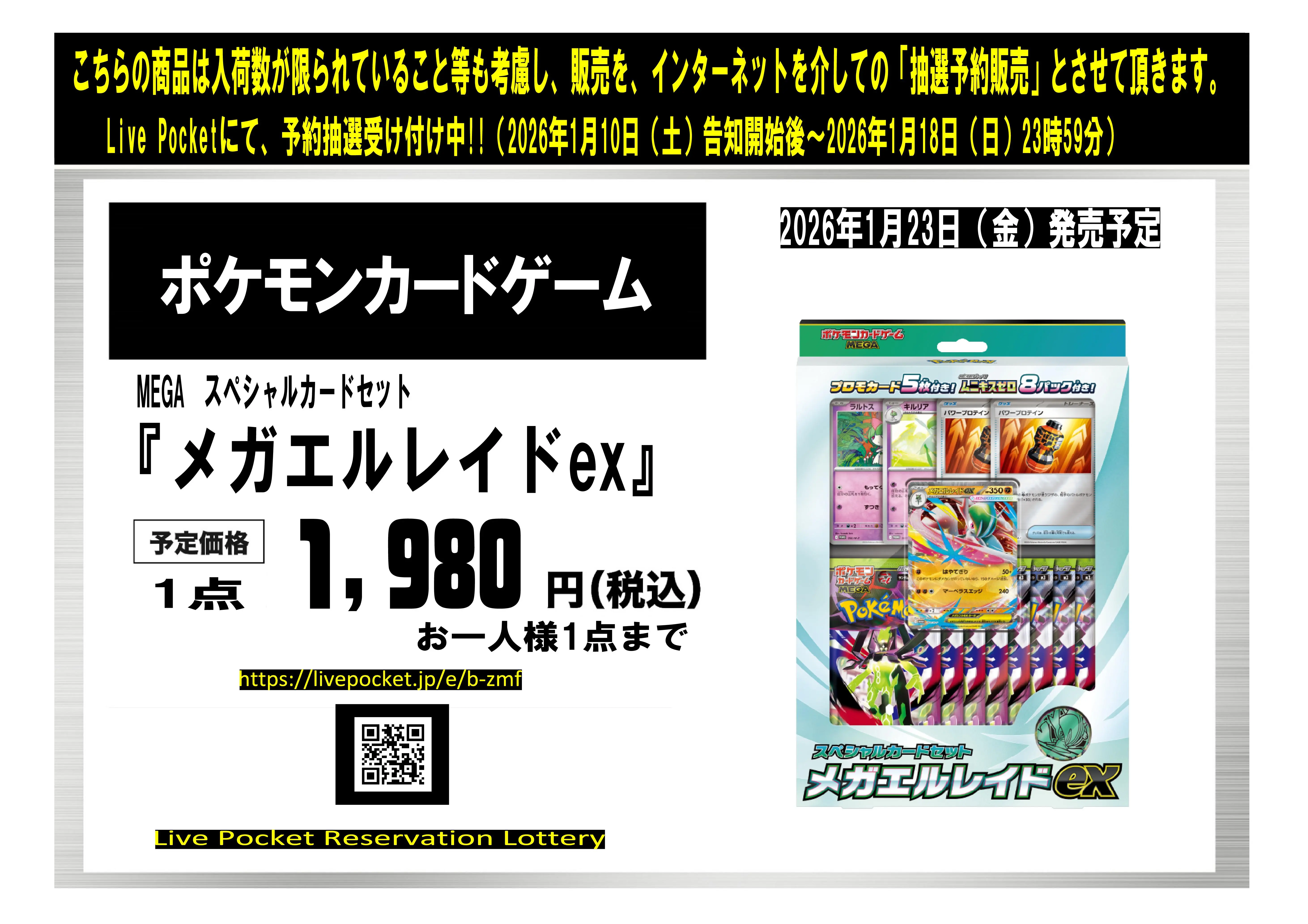 【ジラフル大阪日本橋店】ポケモンカードゲーム 「MEGA スペシャルカードセット メガエルレイドex」抽選予約販売