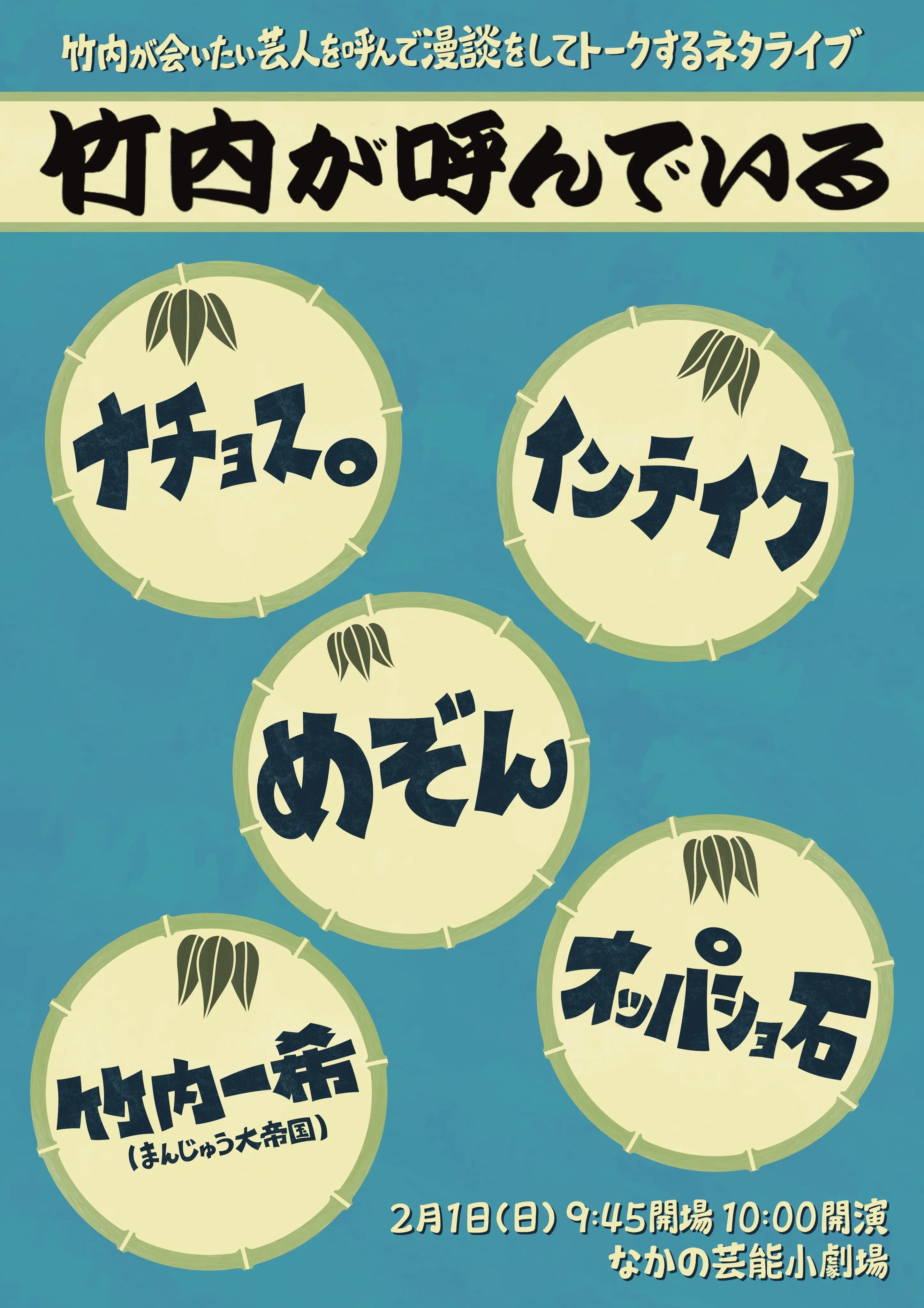 出演者 オッパショ石 / めぞん / インテイク / ナチョス。 / まんじゅう大帝国竹内一希