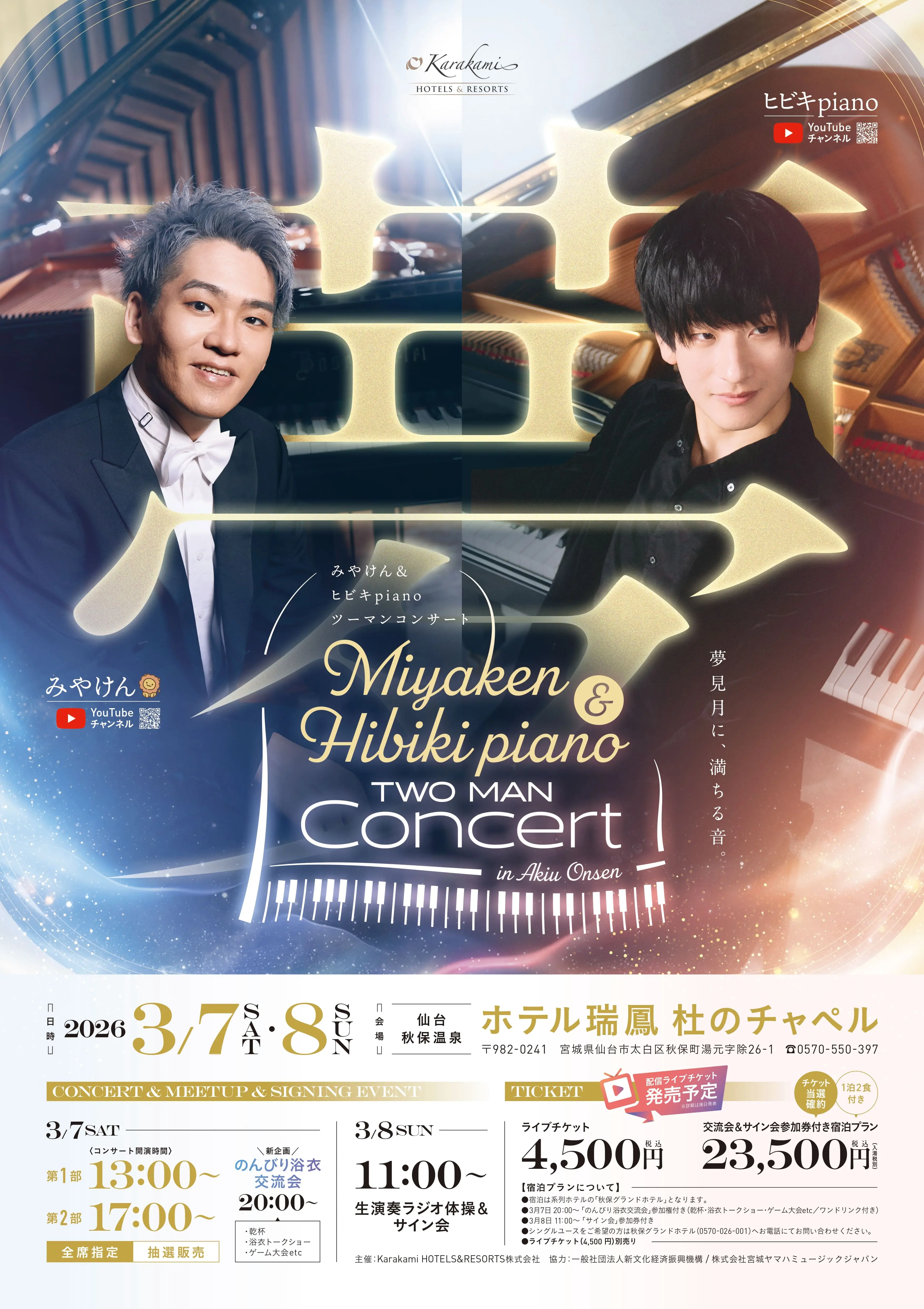 2025/3/7(土)13時の部【みやけん&ヒビキpiano ツーマンコンサート in 秋保温泉】