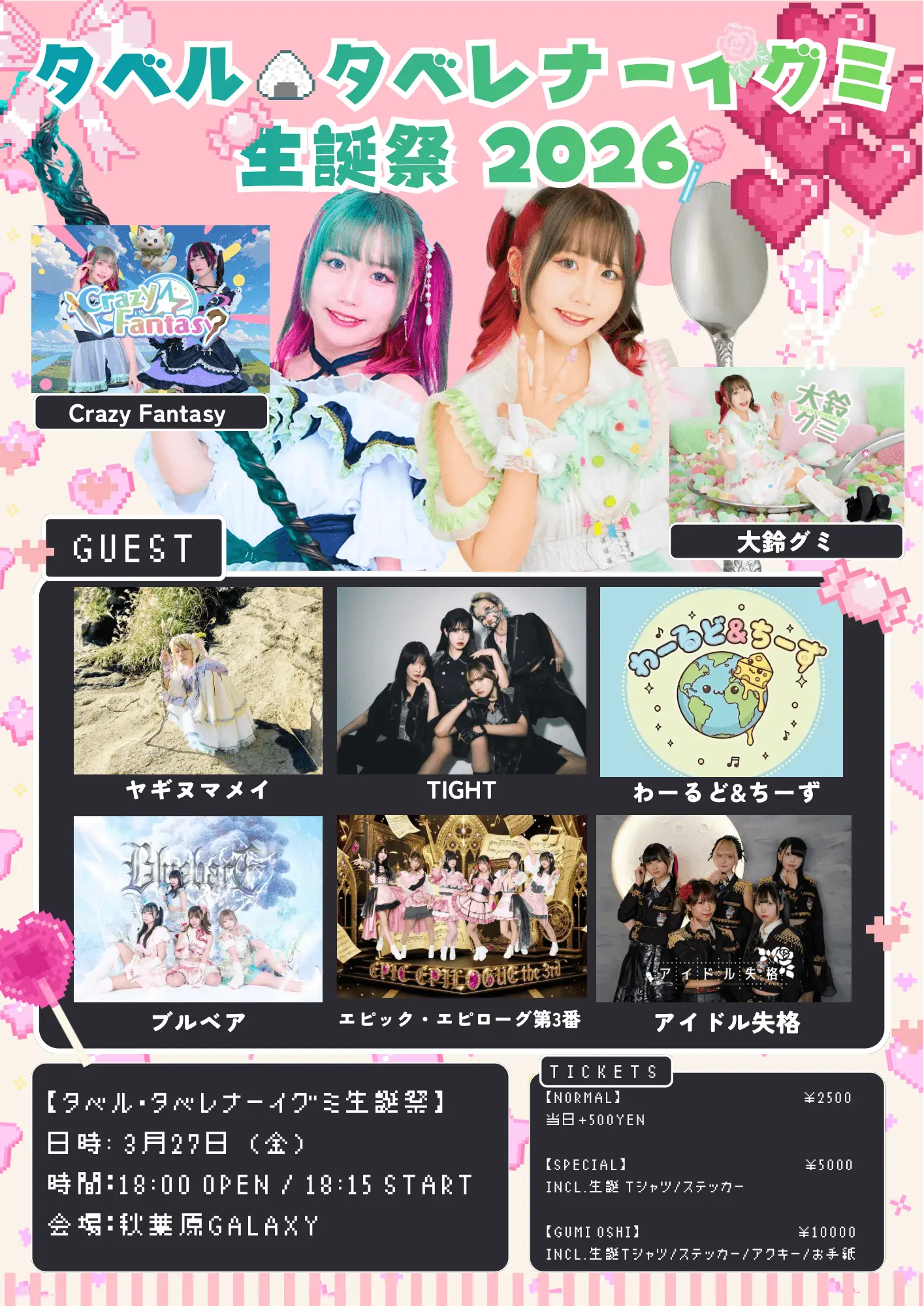 出演者 タベレナーイ・グミ / 大鈴グミ / ヤギヌマメイ / TIGHT / わーるど&ちーず / ブルベア / エピック・エピローグ第3番 / アイドル失格 / Crazy Fantasy