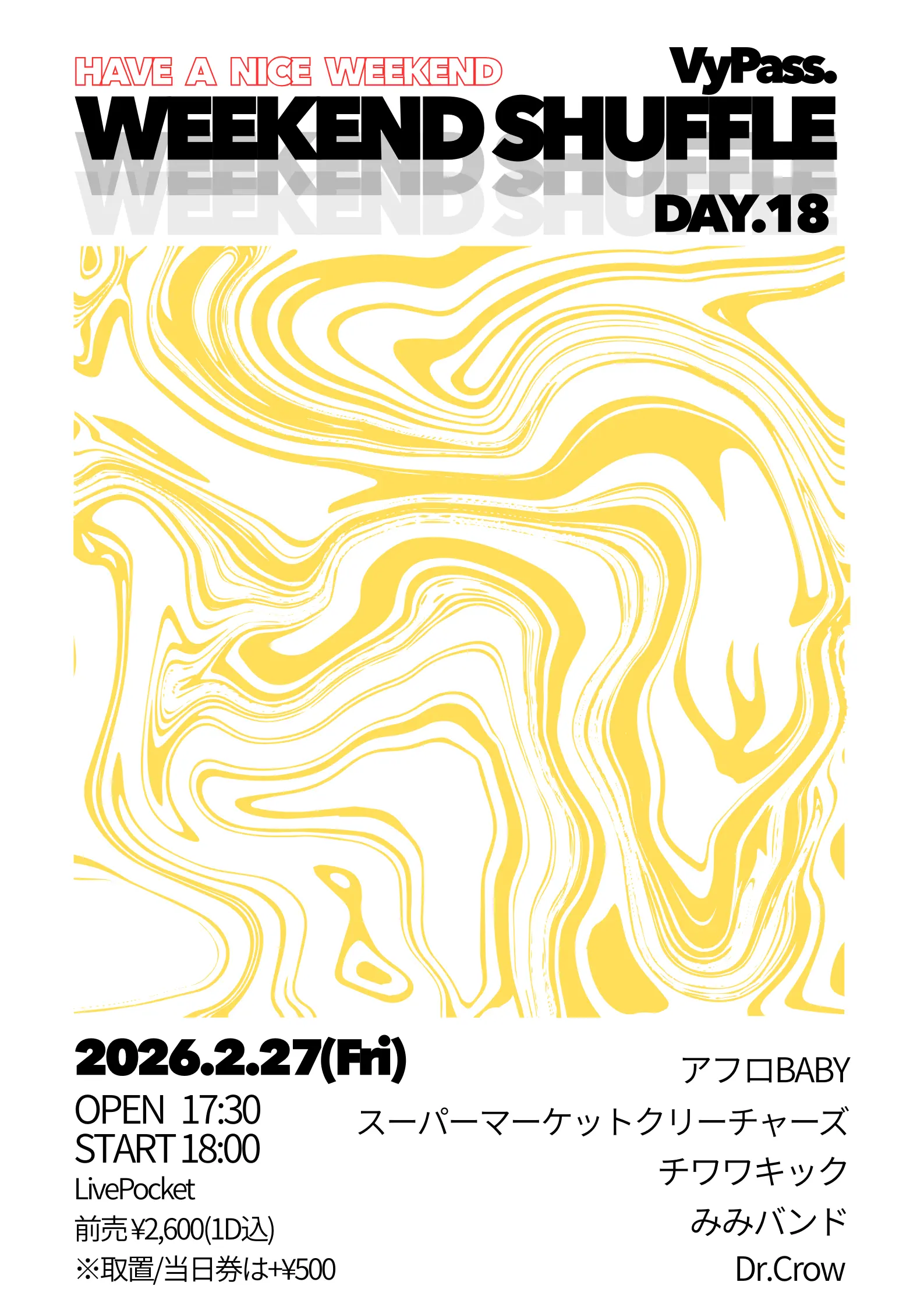 出演者 アフロBABY / チワワキック / みみバンド / Dr.crow / スーパーマーケットクリーチャーズ
