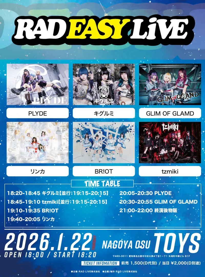 出演者 リンカ / キグルミ / tzmiki / PLYDE / BR!OT / GLIM OF GLAMD