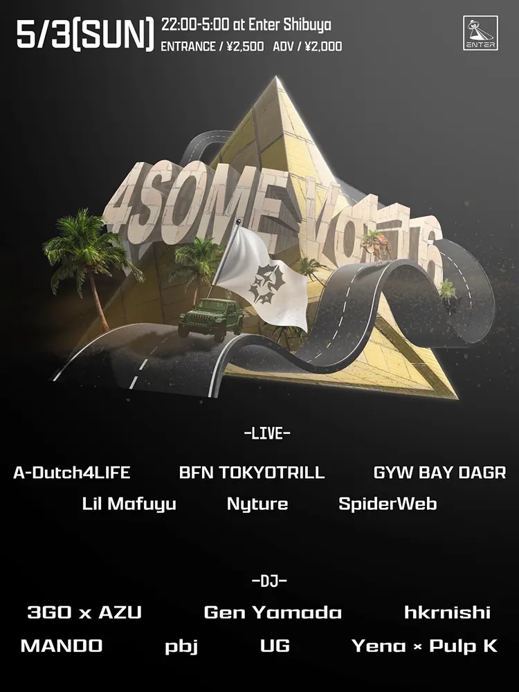 出演者 BFN TOKYOTRILL / Lil Mafuyu / Nyture / SpiderWeb / AZU × 3GO / Gen Yamada / hkrnishi / MANDO / pbj / Pulp K / Yena / UG / A-Dutch4LIFE / GYW BAY DAGR
