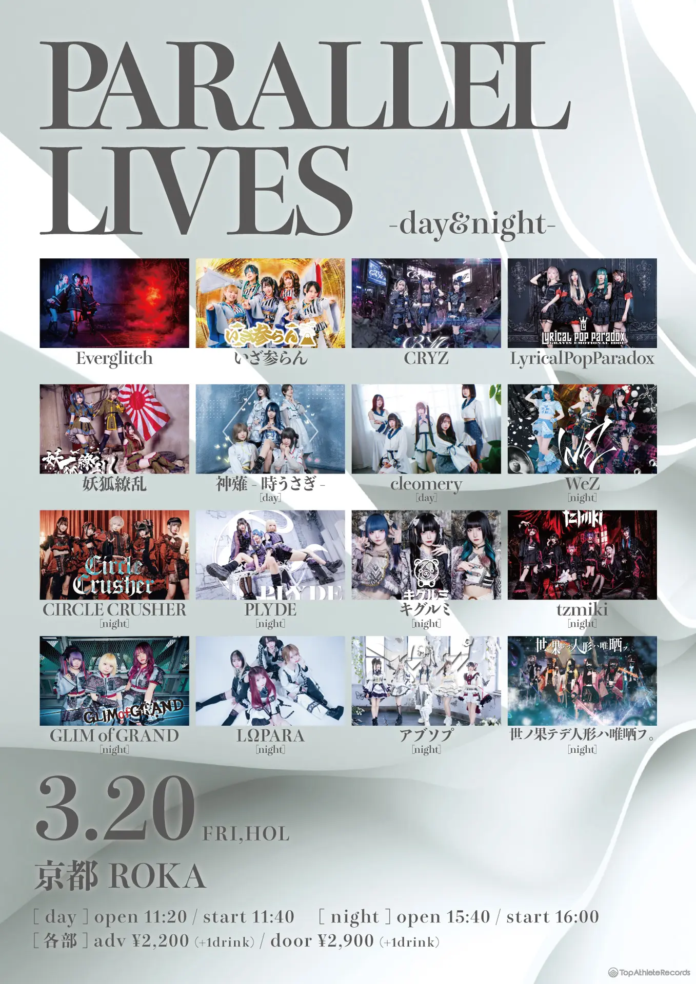 出演者 LyricalPopParadox / 妖狐繚乱 / Everglitch / いざ参らん / CRYZ / WeZ / CIRCLE CRUSHER / PLYDE / キグルミ / tzmiki / GLIM of GRAND / LΩPARA / アブソプ / 世ノ果テデ人形ハ唯哂フ。
