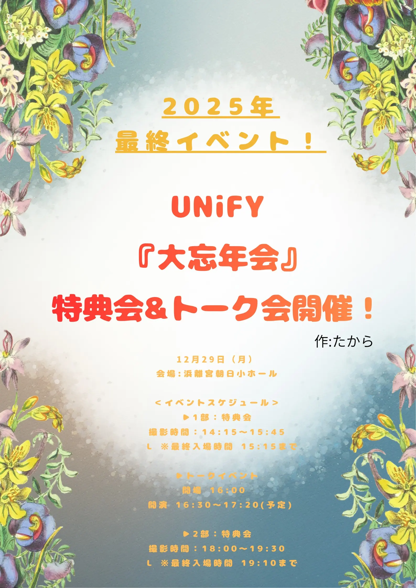 【観覧チケット】12/29(月) UNiFY『大忘年会』特典会&トーク会!