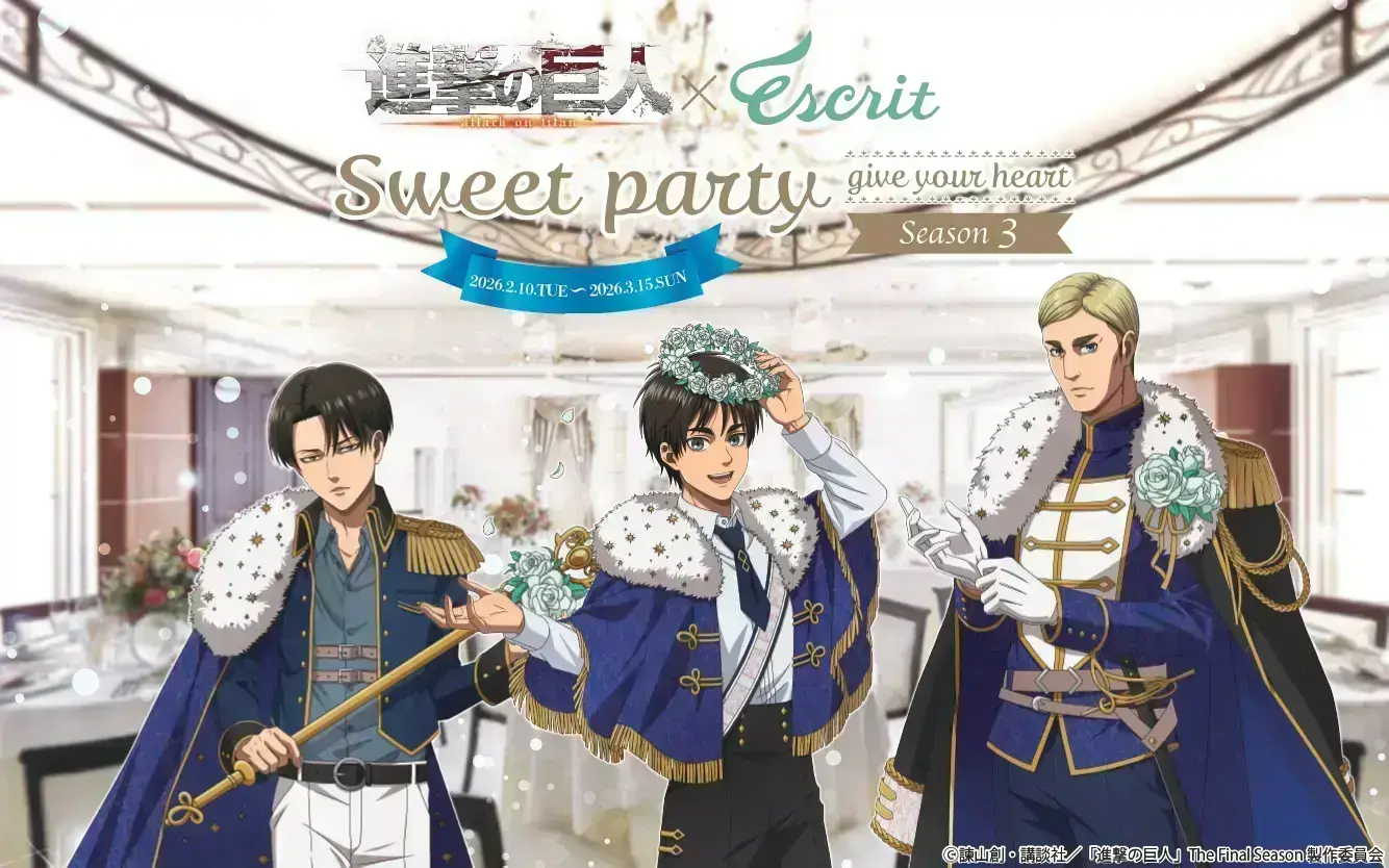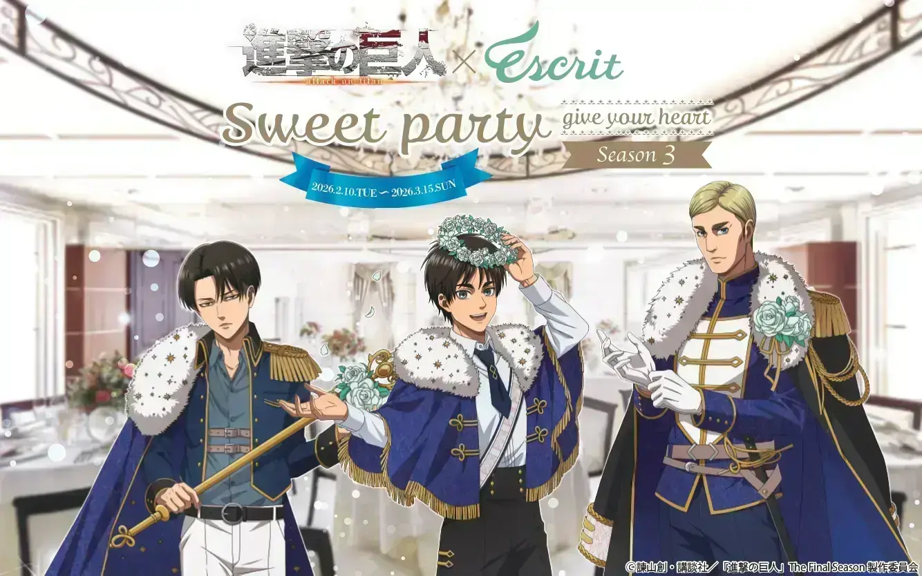 2/10(火) 【神奈川/新横浜】TVアニメ『進撃の巨人』 × Escrit Sweet party ~ give your heart ~ Season3 コンセプトルーム宿泊